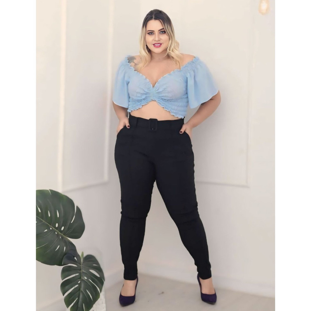 Calça Plus Size Feminina Liso Bengaline Cós Altos Tecido Modelador Levanta Bumbum Reduz Pochete
