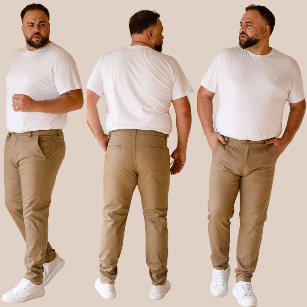 A calça sport fino com Elastanos masculina Plus Size com bolso faca é uma opção moderna e estilosa para homens que desejam um visual mais ajustado e contemporâneo em ocasiões que requerem um toque de elegância. Aqui está uma descrição detalhada desse tipo de calça: **Corte e Modelagem:** - A calça possui um corte Reto e Tradicional, caracterizado por ser mais Modelando ao corpo, devido ao Elastano ...especialmente nas pernas, proporcionando um visual mais moderno e atual. - - O material é frequentemente composto por uma mistura de algodão e elastano, garantindo conforto, elasticidade e um caimento elegante. **Detalhes e Acabamentos:** - O destaque desta calça é o bolso faca, um tipo de bolso sem abas que é costurado diretamente na peça, proporcionando um visual mais clean e contemporâneo. - Os acabamentos são cuidadosamente executados, com costuras refinadas e detalhes que evidenciam a qualidade da peça. **Versatilidade:** - A versatilidade dessa calça permite que seja usada em uma variedade de contextos, desde eventos sociais mais descontraídos até ambientes de trabalho com dress code mais flexível. - Pode ser combinada com camisas sociais, camisetas mais sofisticadas ou suéteres, oferecendo diversas opções de estilo. FOTOS IDENTICAS AO PRODUTO!!!! CALÇA PLUS SIZE SPORT FINO CALÇA ELASTANO SARJA CALÇA CAQUI PLUS SIZE PRESENTE CASAMENTO FESTAS CASUAL TRABALHO CULTO VARIAS OCASIÕES
