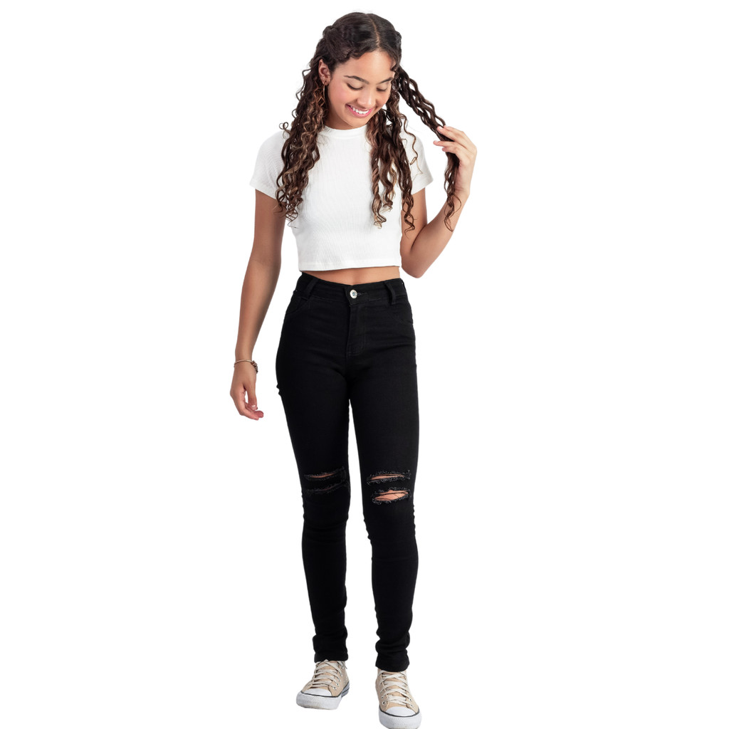Calça Preta Jeans Justinha Com Lycra Menina Infantil Juvenil Elastano Escolar