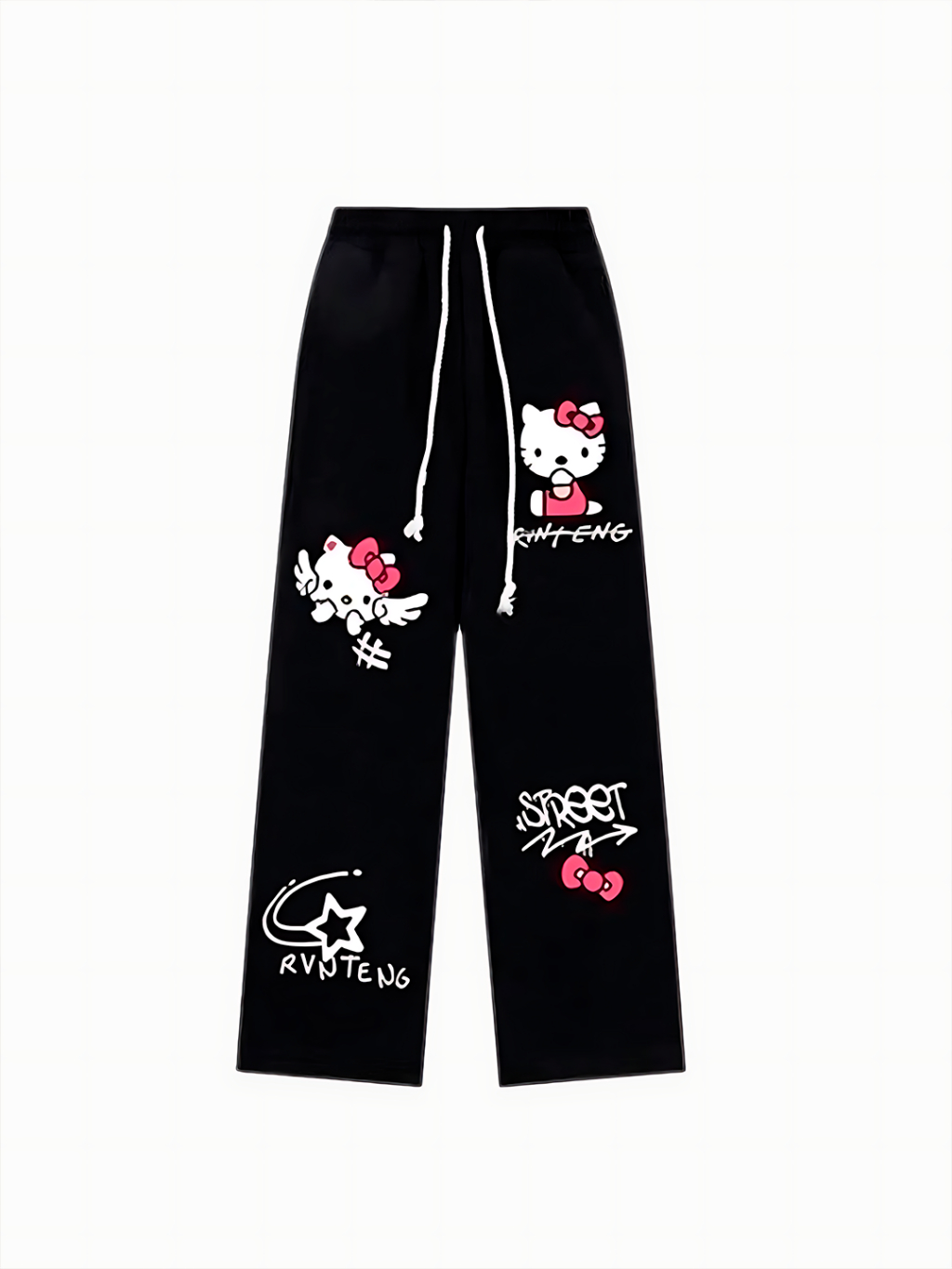 Calça Reta Feminina Wide Leg Hello Kitty Streetwear Reta Moletom 100% Algodão