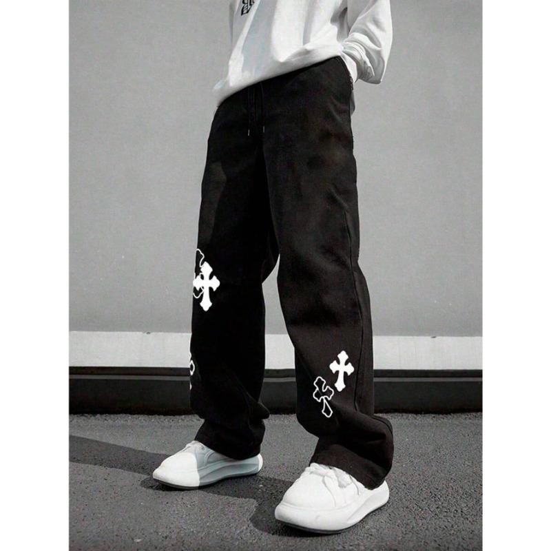 Calça Reta Masculino Estampa de Cruz Streetwear Casual