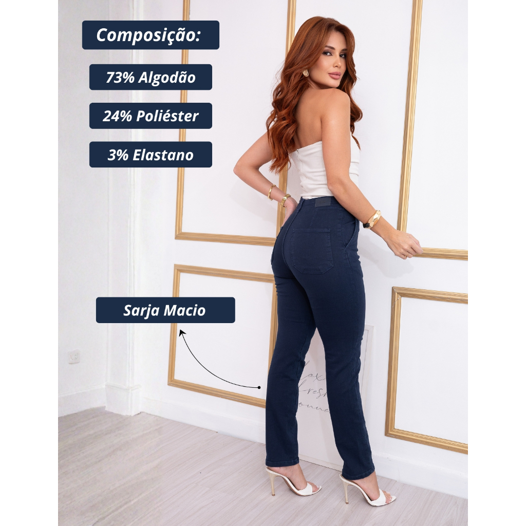 Calça Reta Sawary Jeans – Sofisticação, Conforto e Caimento Impecável Se você busca uma peça versátil, elegante e extremamente confortável, essa calça reta da Sawary Jeans é aquele investimento inteligente que transforma qualquer look. Produto original. Qualidade reconhecida nacionalmente. Modelagem Reta – Elegância que Nunca Sai de Moda A modelagem reta é um clássico atemporal. Ela equilibra a silhueta, cria linhas mais alongadas e transmite sofisticação imediata. Benefícios: Alongamento visual das pernas Caimento alinhado e elegante Ideal para ambientes profissionais ou produções mais refinadas Combina facilmente com salto, scarpin, bota ou até tênis É aquela peça que você veste e sente instantaneamente mais elegante. Cintura Alta – Segurança e Valorização da Silhueta A cintura alta é um dos maiores aliados da mulher moderna. Além de elegante, ela proporciona sustentação e conforto durante todo o dia. Benefícios: Modela a região abdominal Define a cintura Valoriza as curvas com discrição Mais segurança ao sentar e se movimentar Perfeita para quem busca postura, confiança e um visual mais estruturado. Bolso Faca – Detalhe Sofisticado que Eleva o Look O bolso faca traz um acabamento mais refinado e contemporâneo, elevando o nível da peça. Benefícios: Visual mais elegante e minimalista Estética moderna e alinhada Ideal para composições sociais e sofisticadas Um detalhe que faz toda a diferença no resultado final. Cor Azul Marinho – Sofisticação Instantânea O azul marinho é uma cor nobre, versátil e extremamente elegante. Transmite confiança, poder e estilo. Benefícios: Fácil de combinar com branco, bege, preto, nude e cores vibrantes Ideal para trabalho e eventos Não sai de moda Visual mais refinado que o jeans tradicional É a escolha certa para quem quer fugir do básico sem abrir mão da versatilidade. Sarja Macia com Conforto Absoluto Confeccionada em sarja macia, essa calça proporciona uma experiência de uso diferenciada. Benefícios: Toque suave na pele Conforto prolongado durante o dia inteiro Melhor mobilidade Sensação de leveza ao vestir Você sente o conforto desde o primeiro uso. Por que escolher Sawary Jeans? A Sawary é referência nacional em qualidade, modelagem e tecnologia em jeanswear. Cada peça é desenvolvida para valorizar o corpo feminino com conforto e sofisticação. Essa é aquela calça curinga que eleva seu guarda-roupa e resolve produções do trabalho ao jantar especial. Garanta a sua e descubra o poder de uma peça que une elegância, conforto e versatilidade em todos os detalhes.