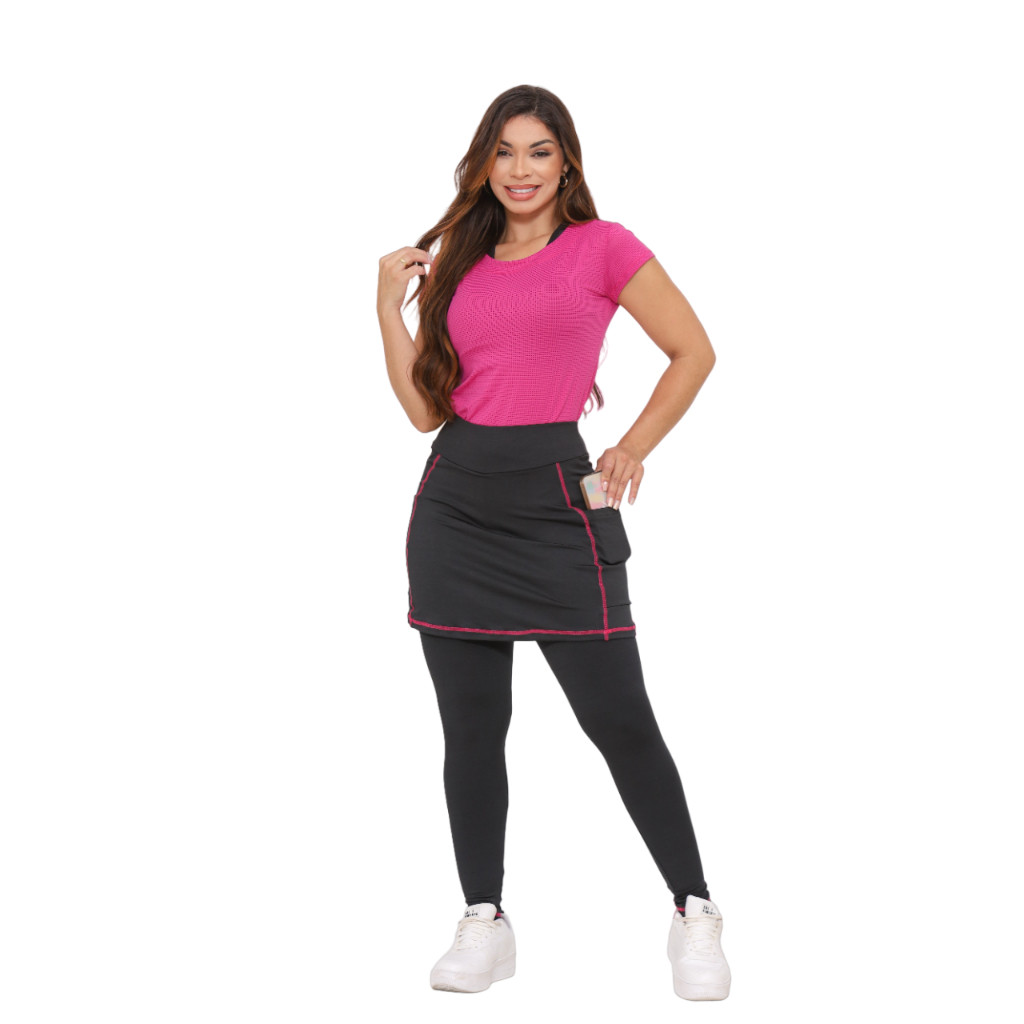 Calça Saia Fitness Moda Evangelica Com Bolso Costuras Crista Modesta