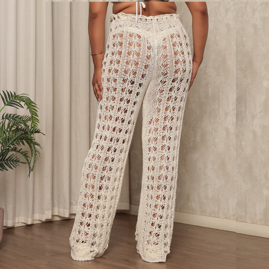 Calça Saida De Praia Plus Size Crochê Tricot Feminina Moda Blogueira Detalhes Com Furos