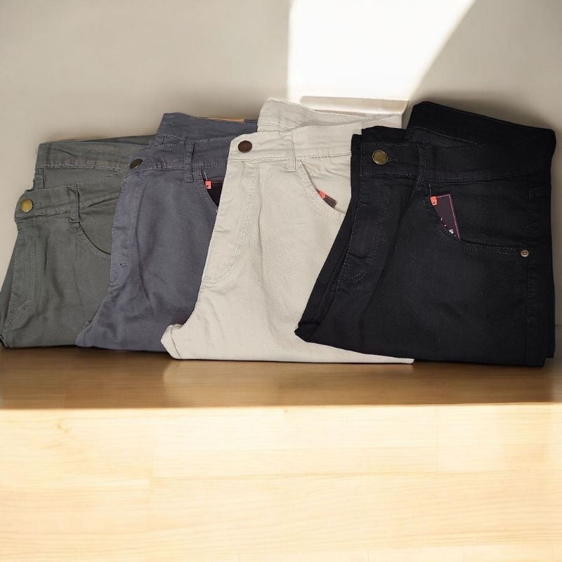 calça sarja masculina Calças Masculina de Sarja Casual do 38 ao 48. A Calça Sarja Masculino possui modelagem levemente ajustada ao corpo e confeccionada em sarja seu diferencial está na composição algodão com elastano proporcionando conforto e movimento. Com dois bolsos frontal e dois bolsos parte de trás. Cós com botão, e fecho com zíper. Detalhes do Produto: - Composição: 97% Algodão 3% Elastano - Modelagem: Calça Slim - Estampa: Sem estampa. Dois Bolsos Frontais e Dois Bolsos Traseiros - Garantia contra defeitos de fabricação. Pronta Entrega. Material Principal - Tecido Sarja Color