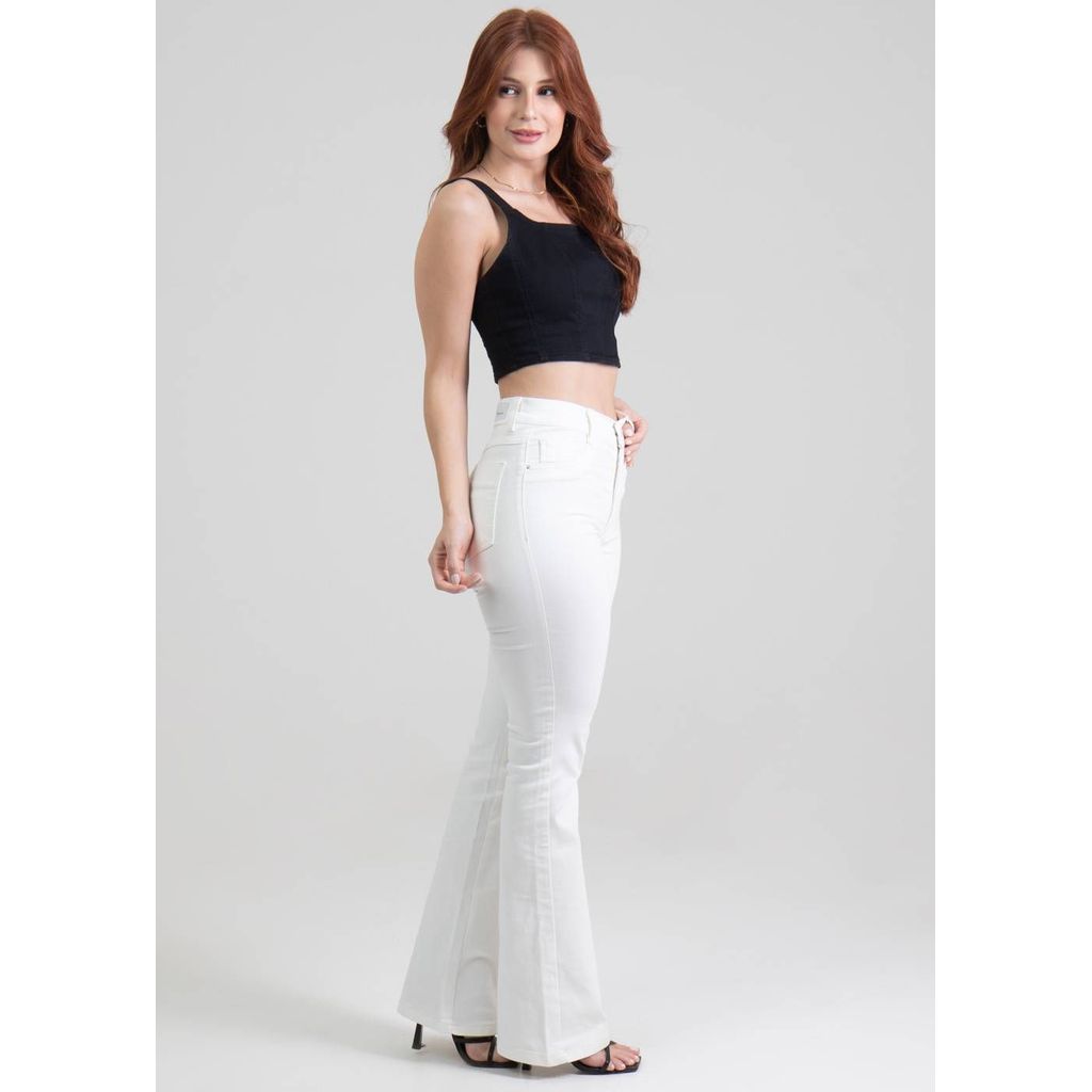 Calça sawary feminina confeccionada em sarja. A modelagem tem o caimento ajustado nas pernas e levemente ampla barra. Cintura alta Fechamento com botão e zíper Bolsos frontais falsos e bolsos traseiros funcionais Barra simples Modelagem: boot cut Tecido: Sarja Tipo de lavagem: Color Cor: Off white