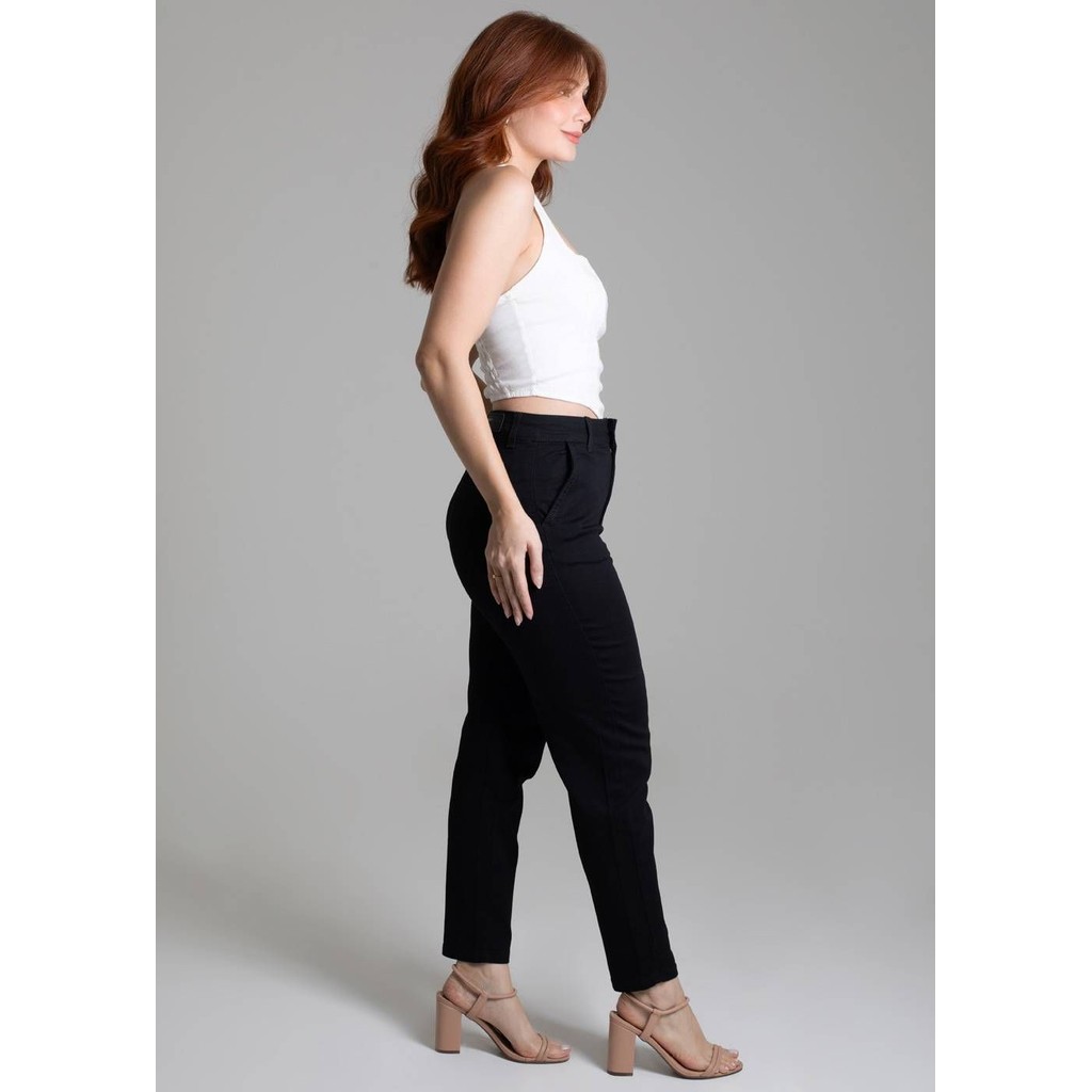 Calça mom confeccionada em sarja. A modelagem mom tem um caimento soltinho nos quadris e coxas ajustando até o tornozelo. Cintura alta Fechamento com botão e zíper Bolsos frontais falsos e bolsos traseiros funcionais Barra simples Modelagem: Mom Tecido: Sarja Tipo de lavagem: Color Cor: Preto Composição: 73% ALGODÃO 24% POLIÉSTER 3% ELASTANO