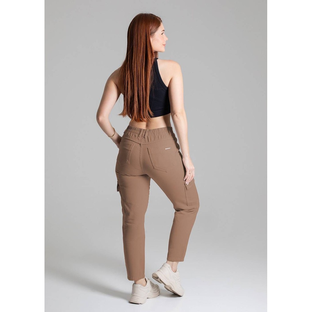 Calça mom confeccionada em sarja. A modelagem mom tem um caimento soltinho nos quadris e coxas ajustando até o tornozelo. Cintura alta Fechamento com botão e zíper Bolsos frontais bolsos laterias e bolsos traseiros funcionais Barra simples Modelagem: Mom Tecido: Sarja Tipo de lavagem: Color Cor: Marrom Composição: 100% ALGODÃO