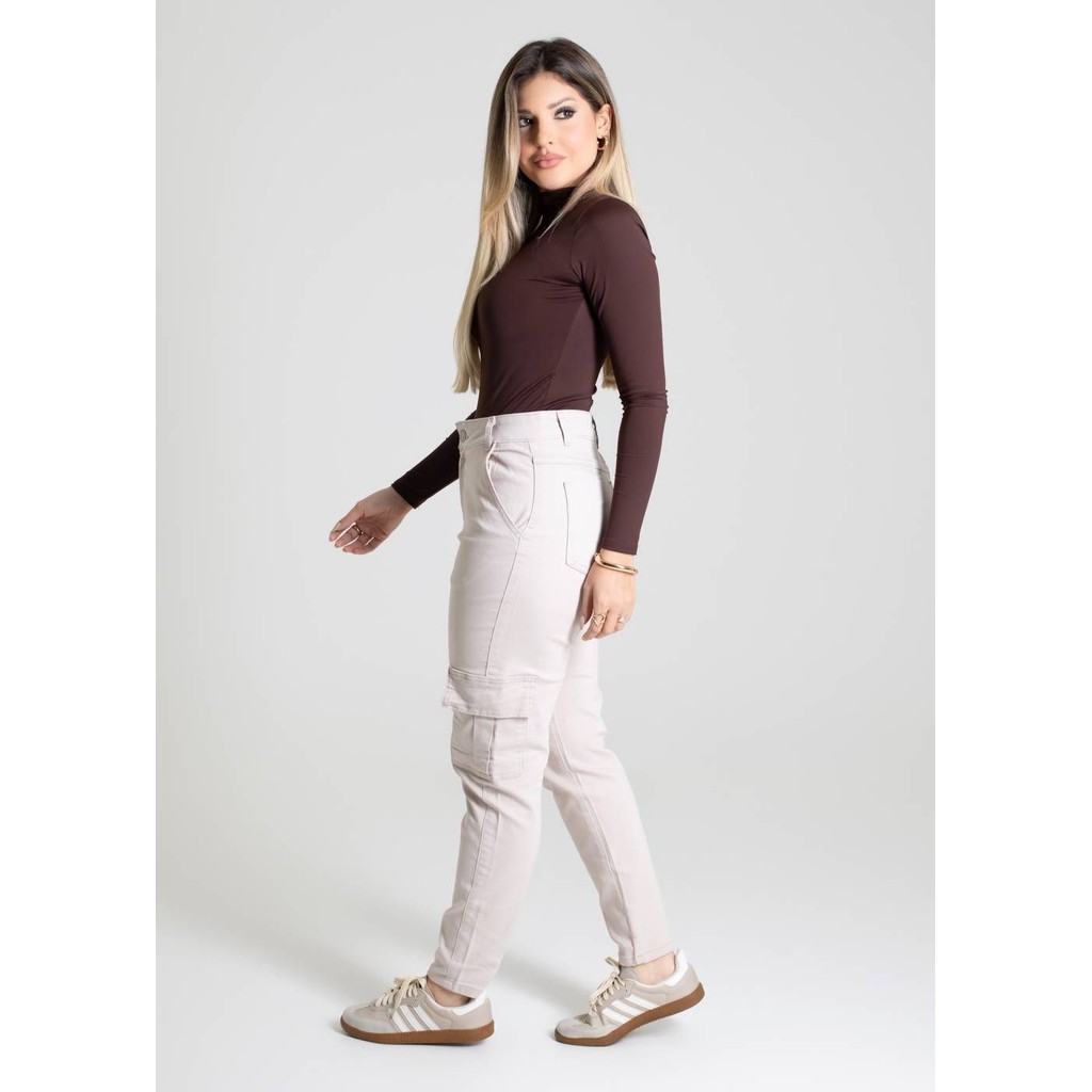 Calça mom confeccionada em sarja. A modelagem mom tem um caimento soltinho nos quadris e coxas ajustando até o tornozelo. Cintura alta Fechamento com botão e zíper Bolsos frontais e laterais bolsos traseiros funcionais Barra simples Modelagem: Mom Tecido: Sarja Tipo de lavagem: Color Cor: bege Composição: 73% ALGODÃO 24% POLIÉSTER 3% ELASTANO