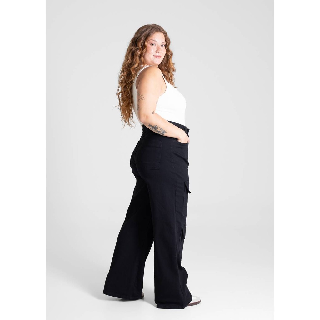 Calça plus size wide leg, confeccionada em sarja. O modelo possui cintura super alta, gancho no lugar e caimento amplo da coxa até a barra. Cintura alta Fechamento através de um botão e zíper Bolsos frontais e posteriores funcionais Barra simples Tecido: Sarja Tipo de Lavagem: Color Cor: Preto Composição: 73% ALGODÃO 24% POLIÉSTER 3% ELASTANO Tipo de lavagem: AMACIADO