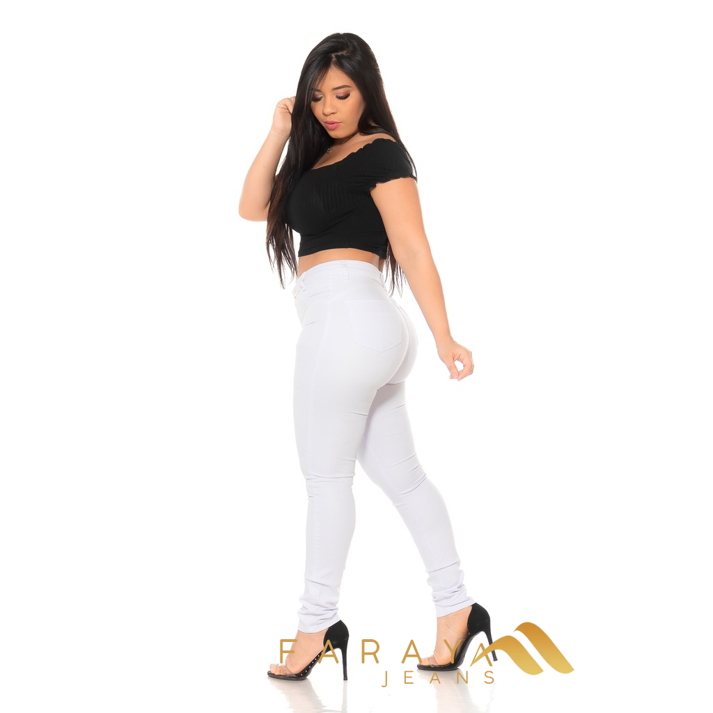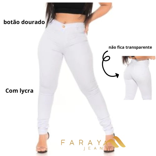 Calça Skinny feminina Branca lycra faraya jeans cintura alta modela bumbum tecido zero transparencia