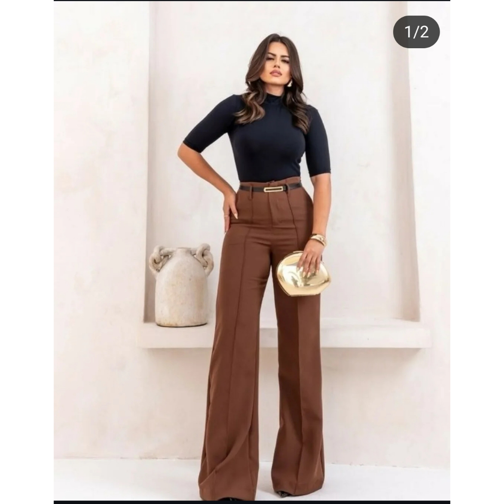Calça Social Feminina Pantalona Alfaiataria Com Cinto Lançamento Moda Luxo Elegancia