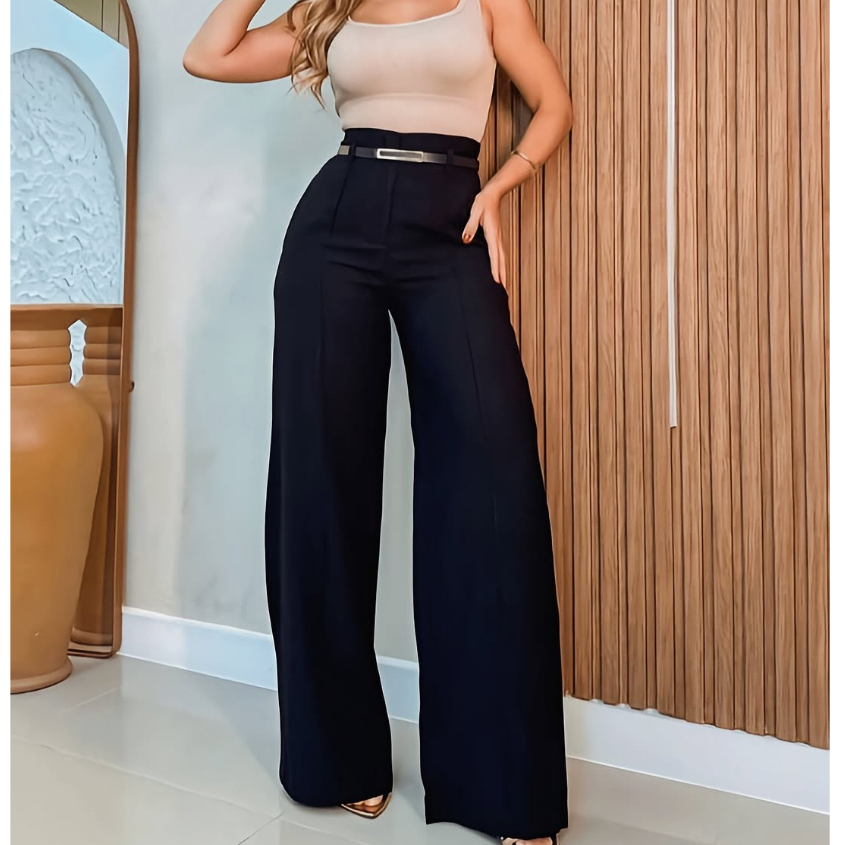 Calça Social Feminina Pantalona Alfaiataria Com Cinto Lançamento Moda Luxo Elegancia Social