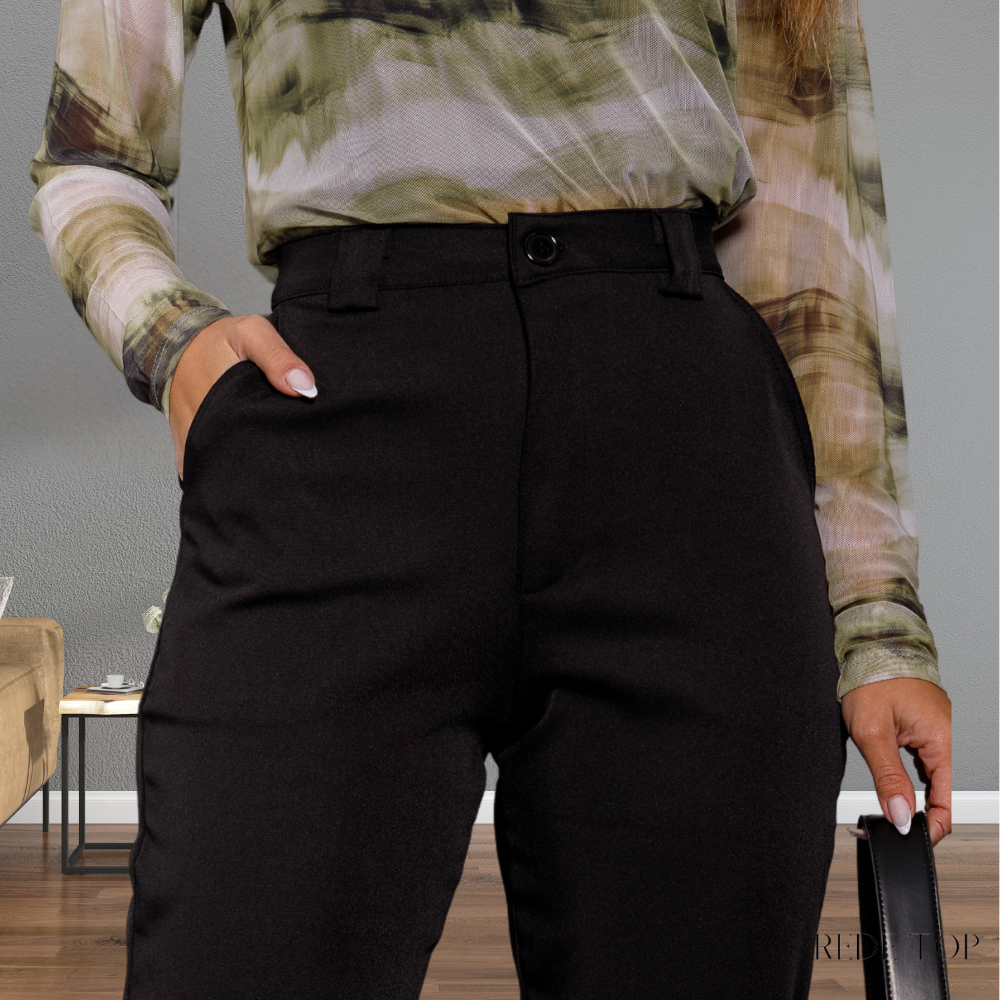 Calça Social Feminina Uniforme Cintura Alta Skinny Alfaiataria Com Bolsos e Passantes