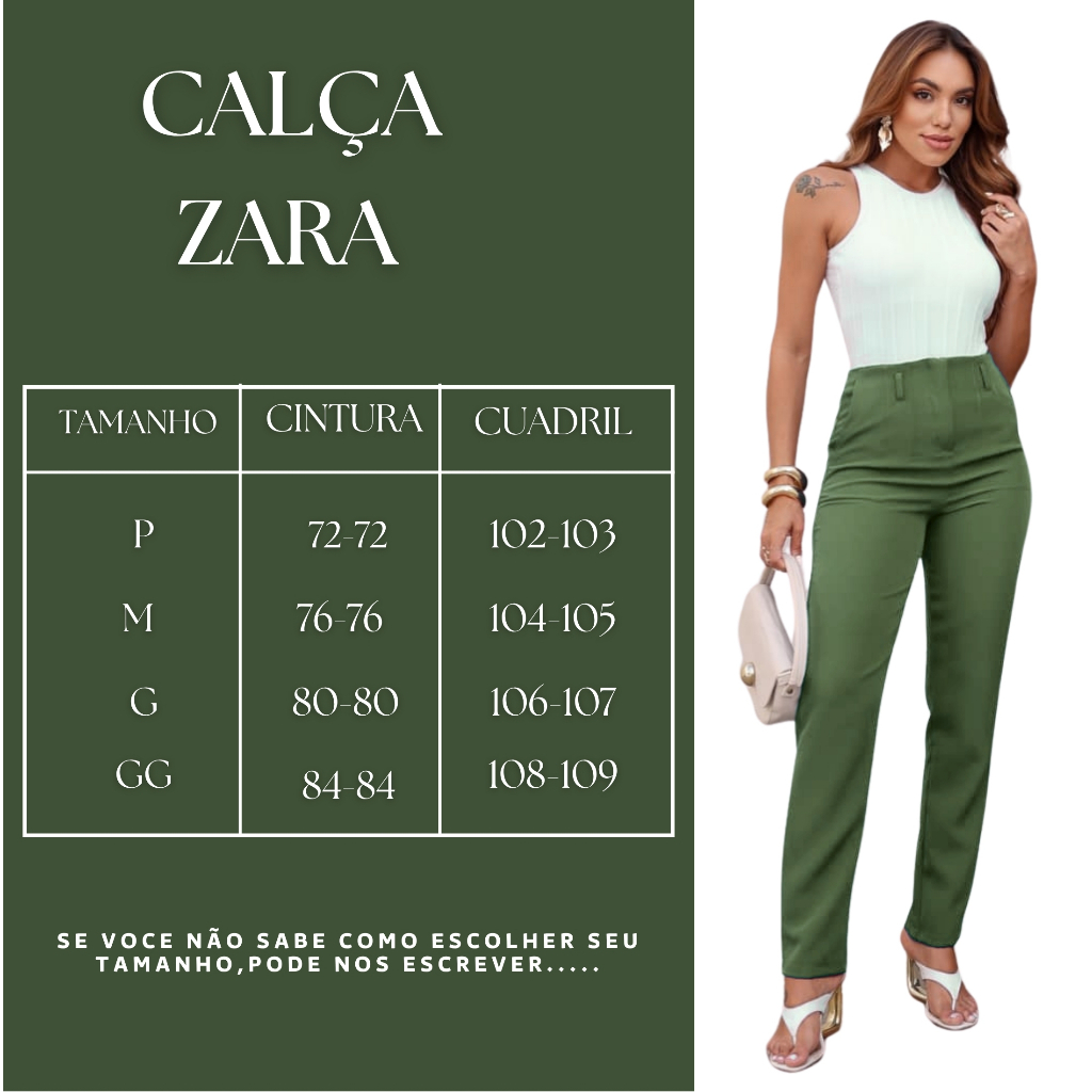 Calça ZR cores novas Alfaiataria premium cores 2025 COMPOSIÇÃO 95% Poliéster 05% Elástano DIMENSÕES DO PRODUTO POR TAMANHO TAMANHO P Cintura: 36cm Quadril: 45cm Comprimento: 100 cm TAMANHO M Cintura: 38cm Quadril: 46cm Comprimento: 101cm TAMANHO G Cintura: 40cm Quadril: 49cm Comprimento: 102cm TAMANHO GG Cintura: 42-44 cm Quadril: 51 cm Comprimento: 104 cm