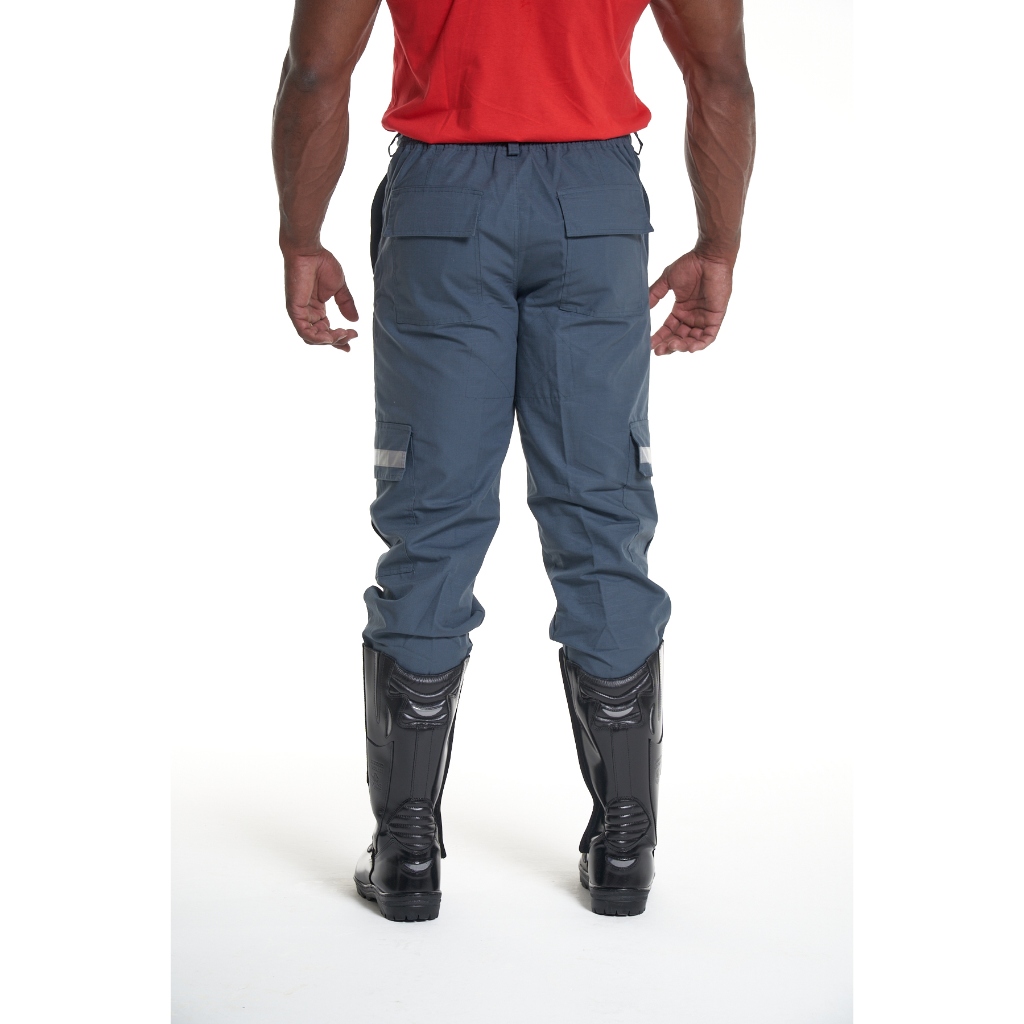 Calça Tática Verde Petróleo Acinzentado com Refletivo Confeccionada com o melhor Ripstop da Cedro, composto por 67% algodão e 33% poliéster. Este tecido é reconhecido por sua durabilidade, resistência a rasgos, além de não desbotar nem encolher nas lavagens. A segurança é uma prioridade, e é por isso que incorporamos faixas de tecido refletivo na cor prata. Estas faixas são estrategicamente posicionadas no sentido horizontal na parte inferior das tampas dos bolsos laterais, garantindo visibilidade em condições de baixa luminosidade. Principais características: Durabilidade e Resistência: O Ripstop da Cedro garante que a calça seja difícil de rasgar, proporcionando uma peça robusta e confiável para diversas atividades. Não Desbota nem Encolhe: A composição do tecido assegura que a cor permaneça vibrante e que o tamanho da calça se mantenha estável mesmo após várias lavagens. Item de Segurança: Faixas refletivas na cor prata para aumentar a visibilidade e garantir a segurança em ambientes com pouca luz. Design Funcional: Com dois bolsos frontais, dois laterais e dois na parte de trás, a calça oferece amplo espaço para armazenamento prático. Reforço Estratégico: O reforço no joelho e entre as pernas contribui para a durabilidade e resistência, especialmente em situações de uso intensivo. Ajuste Confortável: O elástico na parte de trás proporciona um ajuste confortável, garantindo um caimento adequado ao vestir.