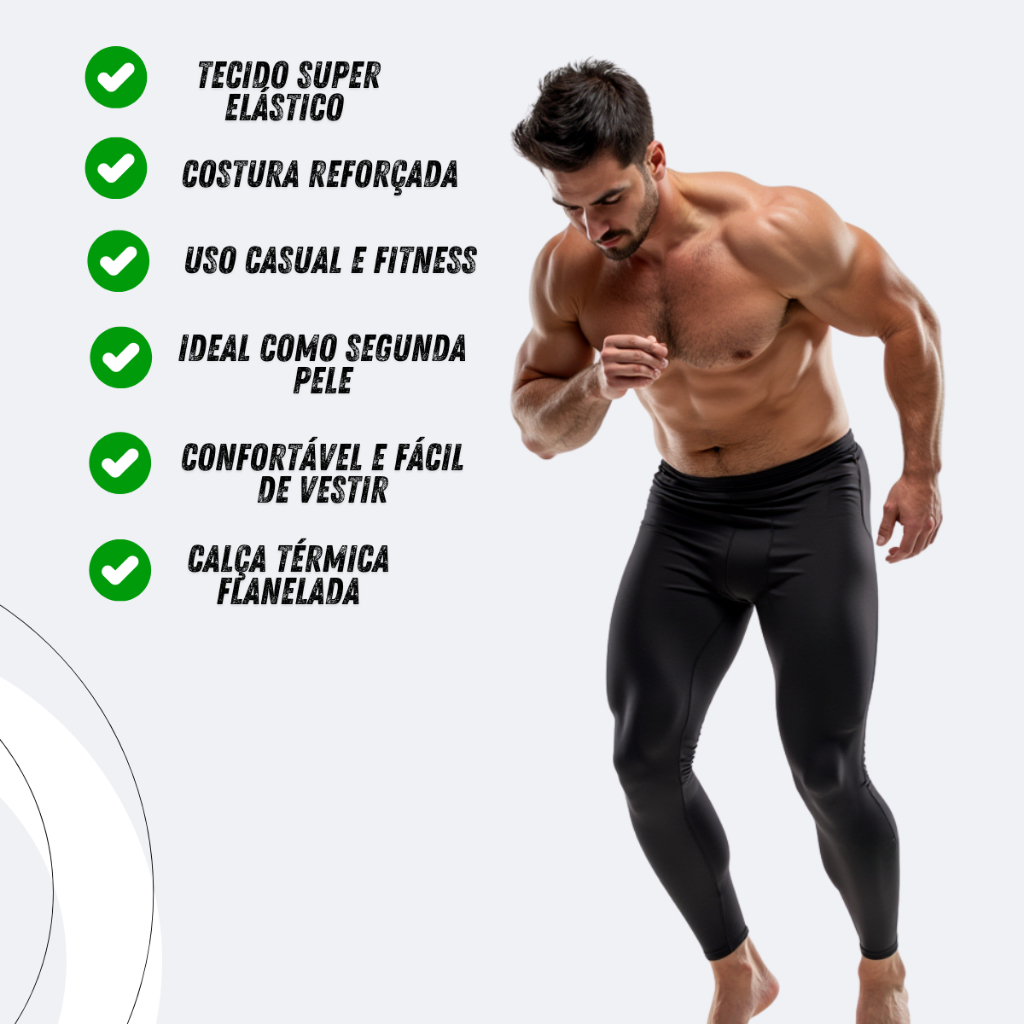 🔥 Calça Térmica Legging Compressão Masculina – Segunda Pele Premium para Treino! Aumente sua performance com nosso Kit 2 Calças Térmicas Masculinas de Compressão! Ideal para treinos intensos, corridas, ciclismo, academia, futebol ou uso como segunda pele em dias frios. O tecido térmico e respirável mantém o corpo aquecido, enquanto a compressão melhora o desempenho e reduz a fadiga muscular. 💪🏽🔥 Perfeita para quem busca conforto, mobilidade e proteção em qualquer atividade esportiva. ------ 🌟 Diferenciais do Produto: • Material térmico que mantém o corpo aquecido ❄️ • Compressão que melhora o desempenho e reduz impactos musculares 💥 • Segunda pele ideal para treinos intensos e frio • Tecido respirável e de secagem rápida 🌀 • Modelagem anatômica que se ajusta perfeitamente ao corpo • Não fica transparente e oferece segurança total ------ 💬 Perguntas Frequentes (FAQ): A calça esquenta bem no frio? Sim! O tecido térmico ajuda a manter o corpo aquecido mesmo em temperaturas baixas. Funciona como segunda pele? Sim, foi desenvolvida exatamente para isso, garantindo conforto e proteção. É boa para correr? Excelente! A compressão reduz vibração muscular e aumenta a resistência. O tecido é transparente? Não. O material é espesso e seguro, próprio para esportes. ------ ✔️ Ideal para academia, corrida, ciclismo, trilhas, futebol, artes marciais e uso no inverno ✔️ Kit econômico ✔️ Envio imediato