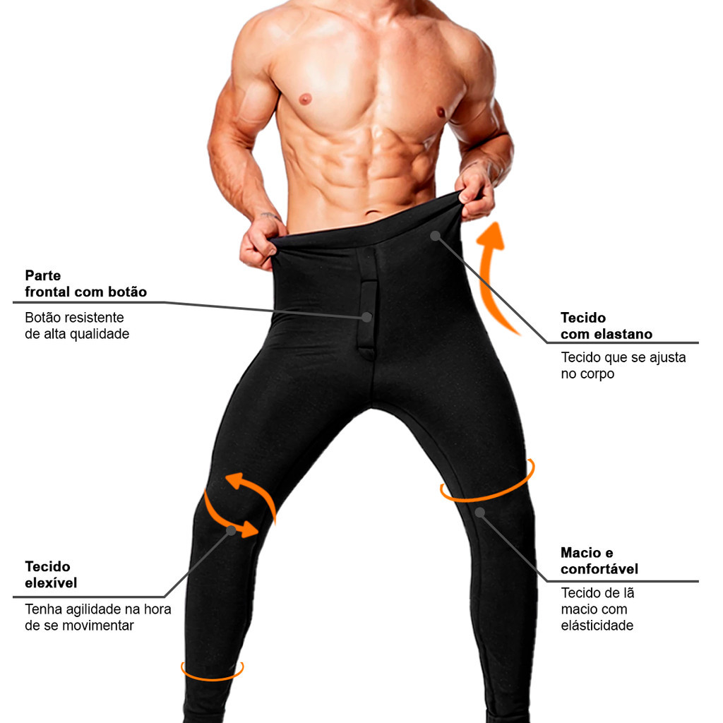 Calça Térmica Masculina Segunda Pele Peluciada Forrada Lã Legging Proteção Frio