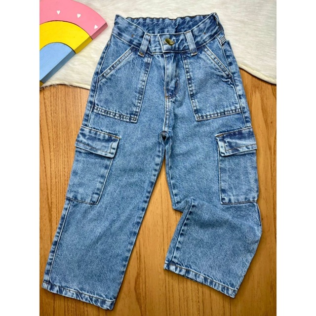 Calça Wide leg Cargo Jeans Feminina Infantil