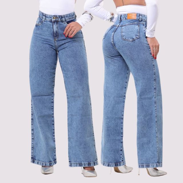 | CALÇA WIDE LEG JEANS MARMORIZADA PANTALONA CINTURA ALTA 100% ALGODÃ... este produto | R$ 61,99 | 62% | 4.8/5 | 157 |