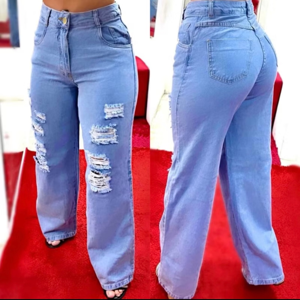Envio Imediato - Estoque a Pronta Entrega. Calça Jeans Feminina WideLeg Destroyed - Linha Premium Sua peça chave para um visual moderno e confortável! Destaques do produto: Modelagem WideLeg: ampla e estilosa. Destroyed: detalhes que trazem um toque despojado e atual ao look. Cintura alta: valoriza o bumbum e proporciona conforto. Sem lycra: tecido firme que mantém a forma ao longo do uso. Alta qualidade: tecido resistente e acabamento premium. Tabela de medidas (cm): Numero 36 Cintura tem 68cm e Quadril com 102cm Comprimento: 103cm Numero 38 Cintura tem 72cm e Quadril com 102cm Comprimento: 103cm Numero 40 Cintura tem 76cm e Quadril com 108cm Comprimento: 104cm Numero 42 Cintura tem 80cm e Quadril com 114cm Comprimento: 105cm Numero 44 Cintura tem 84cm e Quadril com 120cm Comprimento: 105cm Importante: Recomendamos escolher um número maior que o seu habitual, pois esta calça possui forma pequena. Cuidados com o produto: Evite alvejantes para preservar a cor. Seque à sombra para manter a qualidade do tecido. Garanta já a sua Calça Jeans Feminina WideLeg e destaque-se com conforto e estilo em qualquer ocasião!