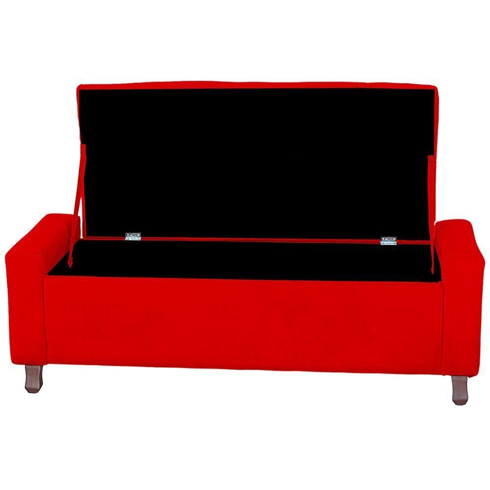 Calçadeira Baú Casal King Size Estofada Valencia Veludo Cor Vermelho