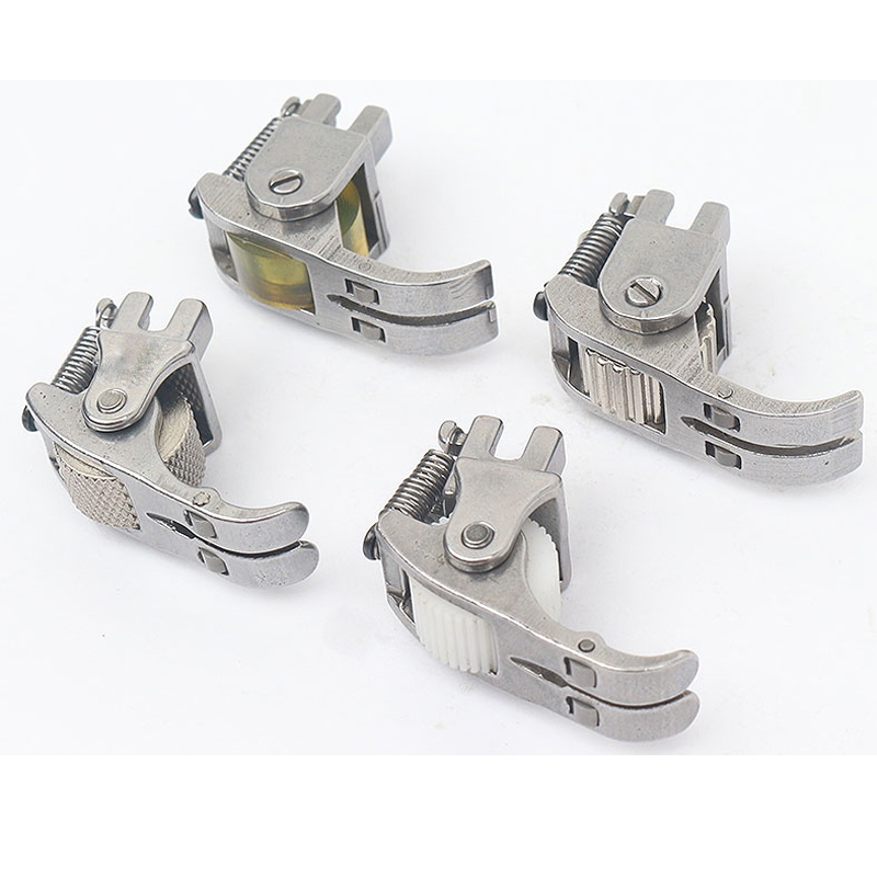 Roda de borracha: adequada para material fino, chiffon, couro, jaqueta para baixo e a maioria dos outros tecidos; Roda de torção: adequada para tecido médio e grosso, cortina de chiffon, etc. Roda de plástico: adequada para tecidos de couro duro; Roda de ferro: adequada para tecido espessamento, almofada de sofá de algodão, calças de algodão grossas, moletom de lã, jeans grosso, etc.