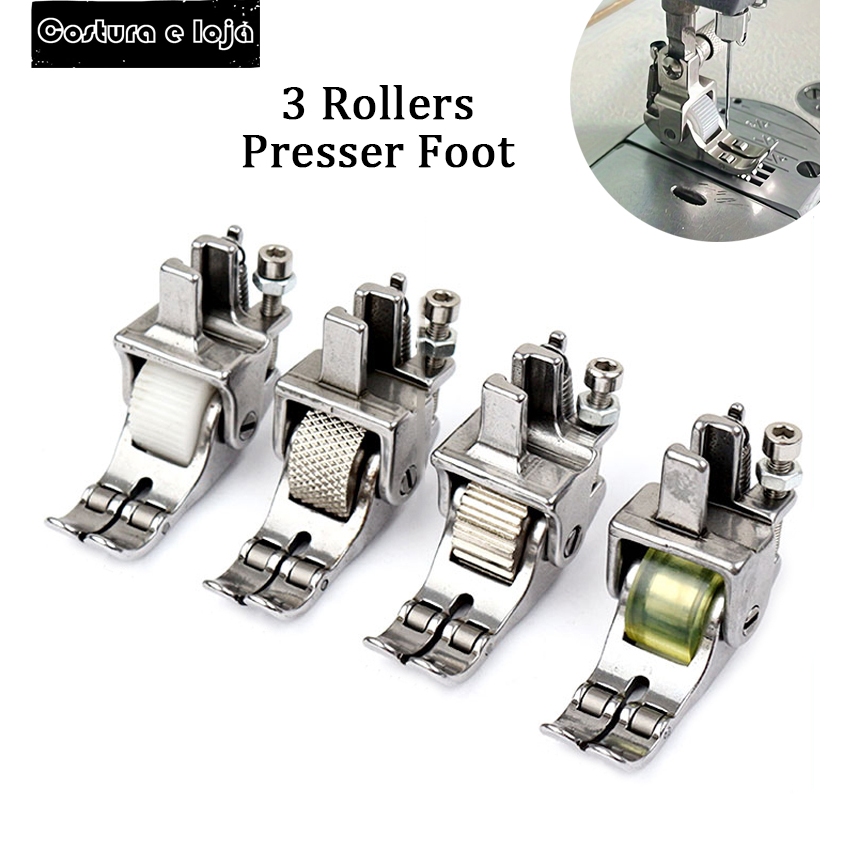 Calcador De Três Rodas Para Carro Plano Para Maquina de Costura Industrial