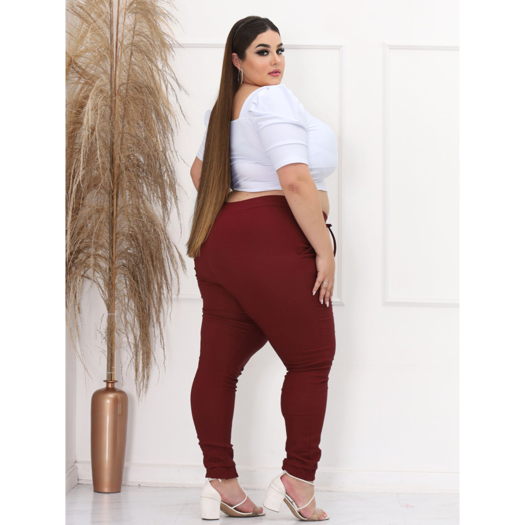 Calças Feminina Jogger Plus Size Tamanho Grande G1 G2 G3 G4 Serve 42 ao 52 Tecido Bengaline Moda Plus Gordinhas