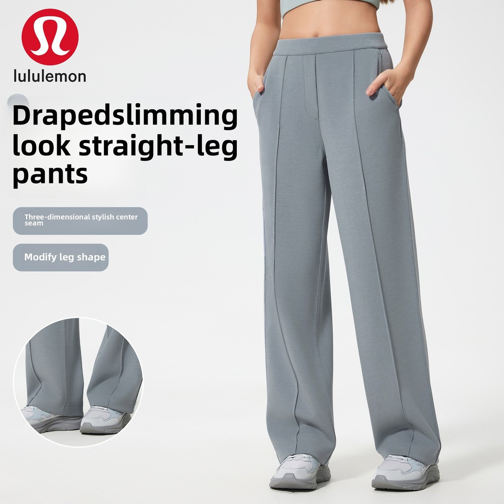 Calças Lulemon de Cintura Média, Casuais, de Perna Larga, com Caimento Solto e Slim, Moda Esportiva e Versátil D25047