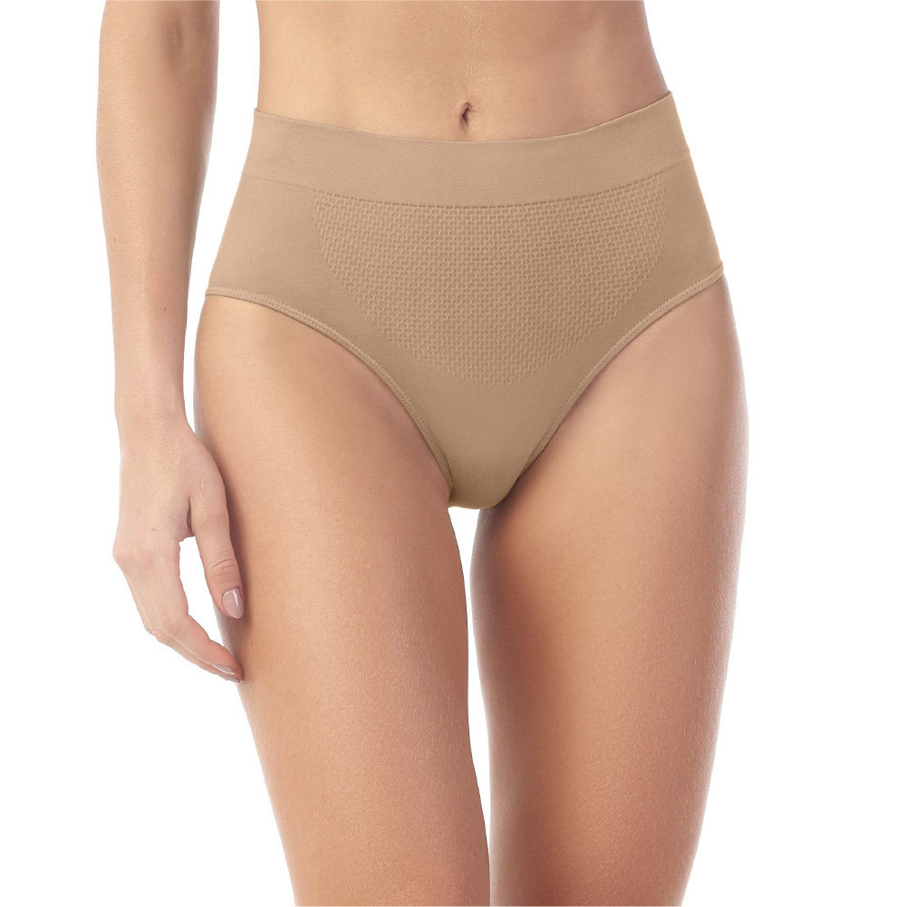A Calcinha Alta Clássica Sem Costura Bege, tem uma modelage ampla oferece maior segurança e conforto. Destaque para as laterais largas que proporcionam cobertura uniforme até o abdômen. Na parte do abdômen, o detalhe em jacquard promove leve compressão na barriga. Perfeita para usar em com saias, calças cintura alta e vestidos. Aposte! Destaque: Este produto é confeccionado com a tecnologia seamless (sem costura). Diferente da confecção tradicional, esta tecnologia produz as peças inteiras em teares. A peça sai praticamente pronta, por isso, descarta a costura para montar diferentes partes das peças, utilizando estas interferências apenas em pequenos acabamentos, proporcionando máximo conforto, maior durabilidade e menos descartes têxteis na produção. Esta tecnologia evita que a peça marque o corpo durante o uso. Composição: 89% POLIAMIDA 11% ELASTANO Referência: ZR0211001 C122