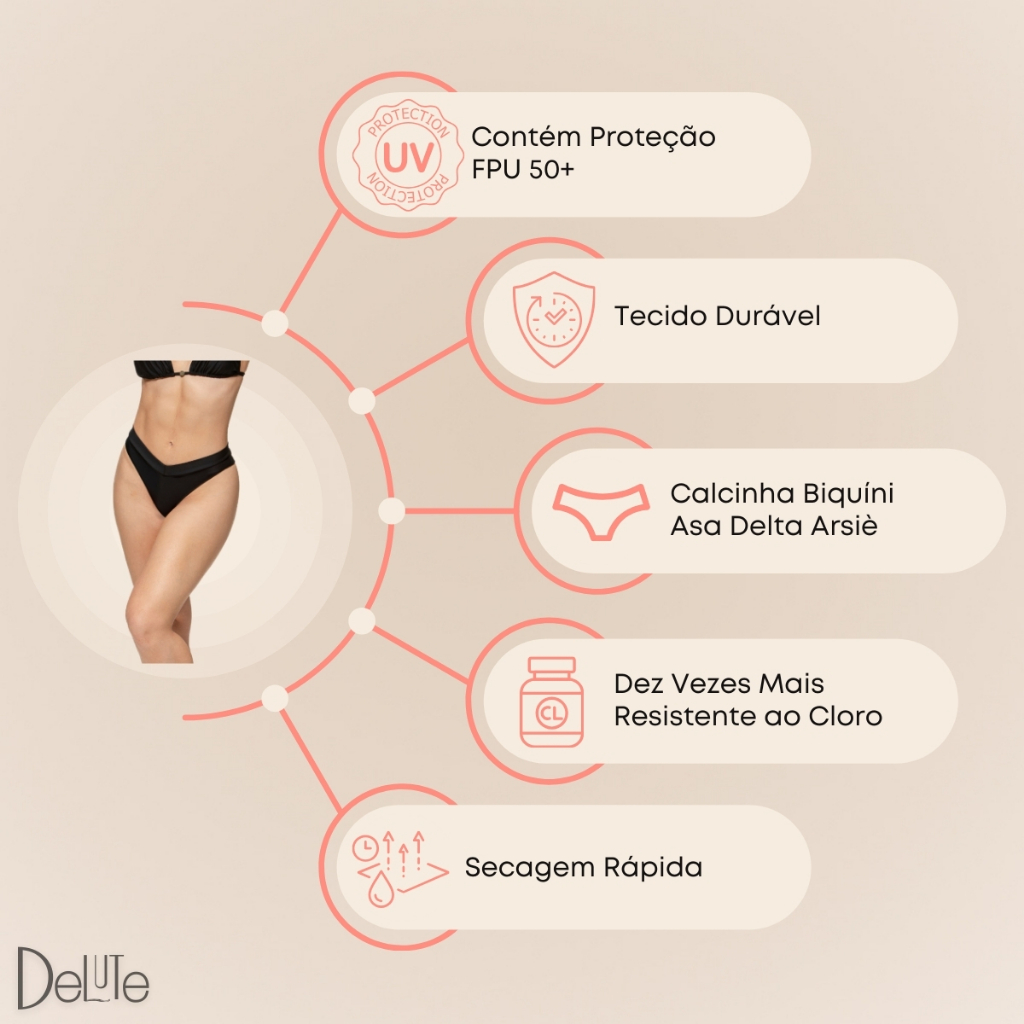 Calcinha Biquíni Arsiè Modelo Fio Dental Asa Delta Cós Alto Moda Praia Clássica Verão FPU 50+
