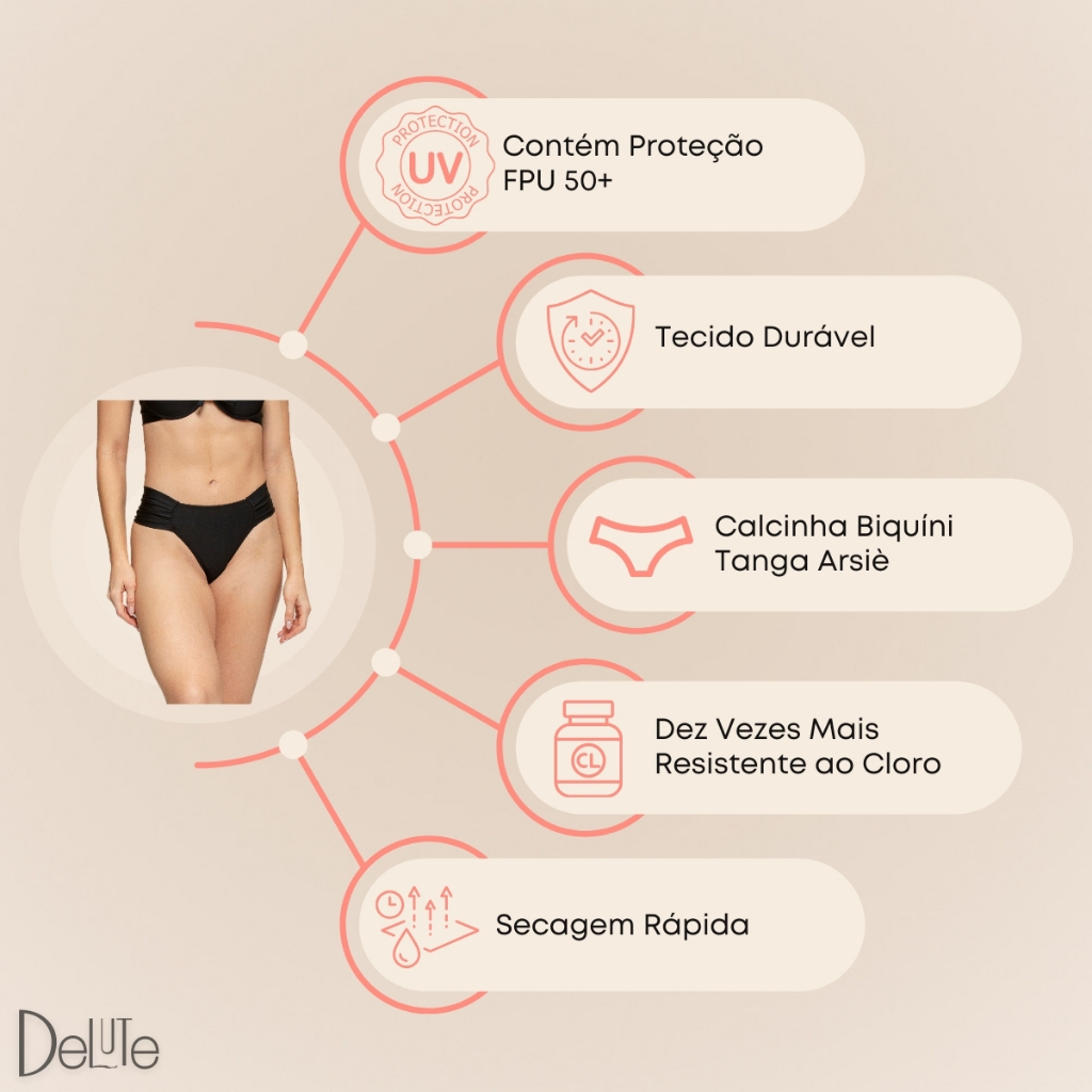 Calcinha Biquíni Arsiè Modelo Tanga Drapeado na Lateral Cós Alto Moda Praia Clássica Verão FPU 50+