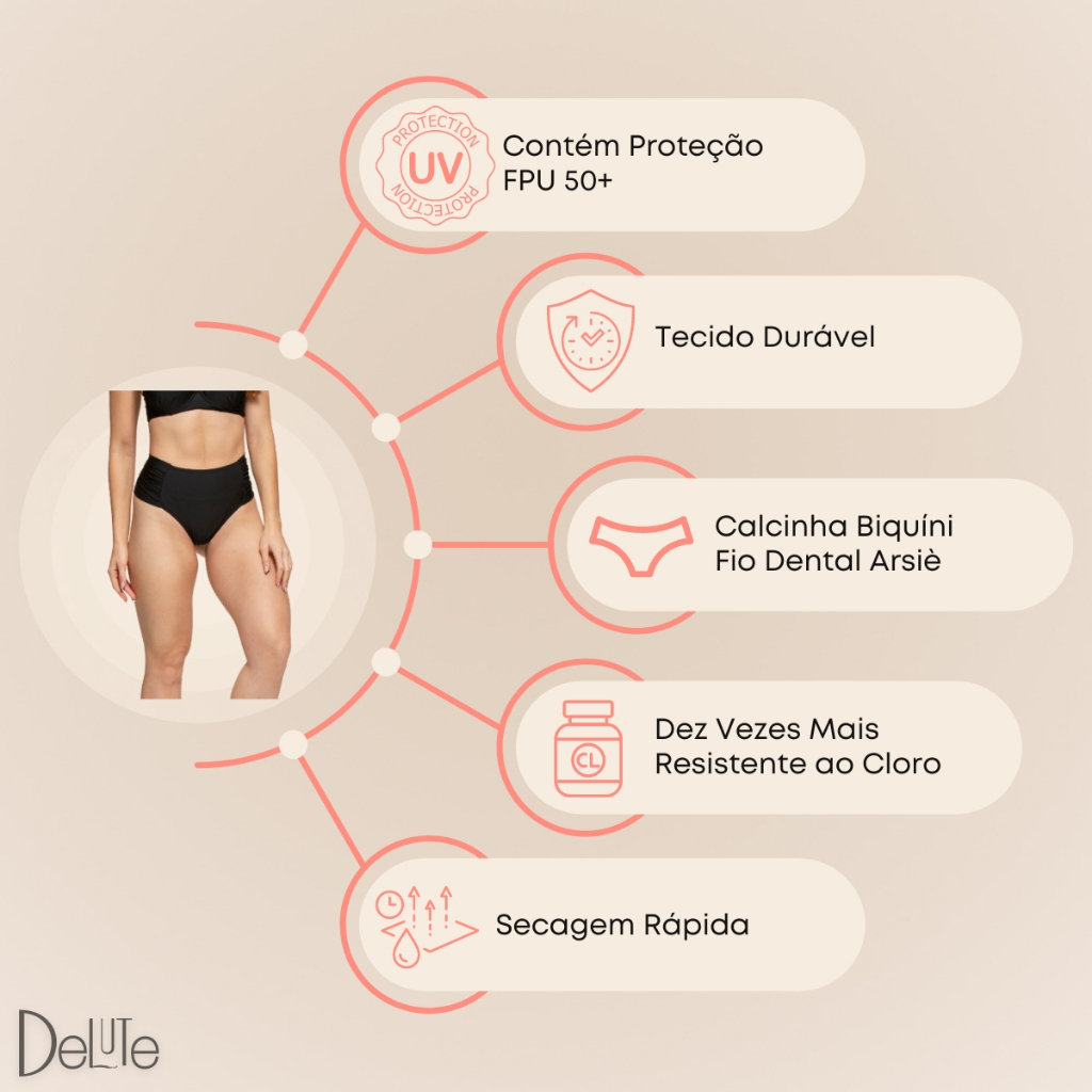Biquíni Arsiè Fio Dental Parte de Baixo Ref: AS5037 A calcinha de biquíni feminina da Arsiè apresenta uma lateral drapeada e cintura alta. O detalhe drapeado lateral valoriza a cintura e ajuda a disfarçar imperfeições, sendo também uma tendência atual na moda praia. É uma opção excelente para quem procura conforto, estilo e segurança ao aproveitar o verão. Este modelo é confortável, moderno e muito apreciado pelas mulheres, pois se ajusta ao corpo e modela a cintura lateralmente. - Modelagem anatômica que garante um ajuste ideal. - Oferece um encaixe perfeito ao corpo. - Drapeado lateral. - Lateral larga. Composição: Tecido: Poliéster 85% Forro: Poliéster 90%