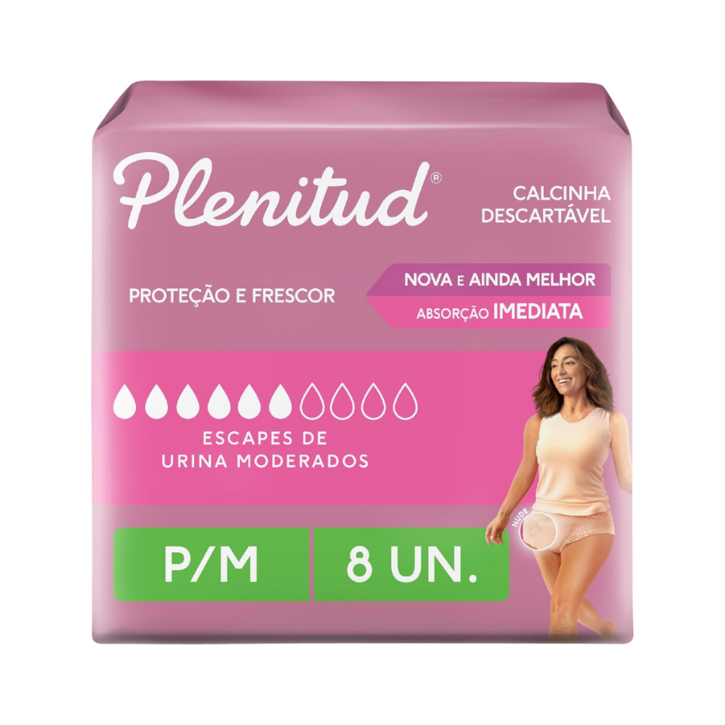 Calcinha Descartável Plenitud Femme P/M Com 8 Unidades A Calcinha Descartável Plenitud Femme foi desenvolvida especialmente para proporcionar conforto e segurança para mulheres que necessitam de proteção contra escapes leves de urina. Com um design discreto e confortável, se adapta ao corpo de forma natural, permitindo liberdade de movimento e total discrição sob a roupa. Principais Características - Proteção Contra Vazamentos: Possui barreiras antivazamento que garantem segurança extra ao longo do dia. - Material Respirável e Confortável: Confeccionada com tecido suave e respirável, oferecendo conforto similar ao de uma roupa íntima tradicional. - Discreta e Ajustável: Design anatômico que se ajusta perfeitamente ao corpo, proporcionando liberdade de movimento e discrição. Benefícios - Segurança e proteção prolongada. - Conforto garantido durante o uso. - Design anatômico para ajuste perfeito ao corpo. - Discrição sob qualquer tipo de roupa. Diferenciais do Produto - Tecnologia Antivazamento: Desenvolvida para absorção eficiente e rápida, evitando desconfortos. - Sensação de Roupa Íntima Tradicional: Ao contrário de outras opções descartáveis, seu material respirável proporciona bem-estar o dia todo. - Ideal para diversas situações: Indicada para uso diário, pós-parto, viagens ou qualquer momento que exija segurança extra. Especificações Técnicas - Tamanho: P/M - Quantidade: 8 unidades - Indicação: Mulheres com escapes leves de urina Instruções de Uso - Abra a embalagem e retire uma unidade. - Vista a calcinha como uma roupa íntima tradicional. - Após o uso, descarte em local adequado. Avisos e Precauções - Produto de uso único. - Descartar após o uso em lixeira apropriada. - Não descartar no vaso sanitário. - Manter fora do alcance de crianças. O que está incluso - 1 pacote com 8 unidades de Calcinha Descartável Plenitud Femme P/M ---- Dúvidas Frequentes ---- Os produtos são originais? Sim. Todos os nossos produtos são originais. Emitem nota fiscal? Sim. Emitimos nota fiscal para todos os pedidos.