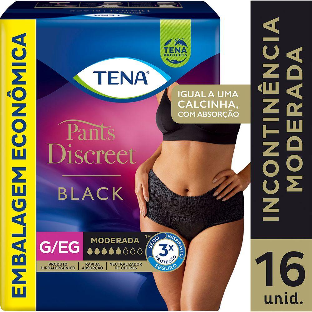Calcinha Descartável Tena Pants Discreet Preta G/EG 16 Unidades