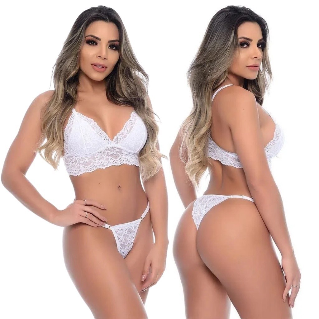 Calcinha e Sutiã Conjunto Sem Bojo De Renda Lingerie Sexy