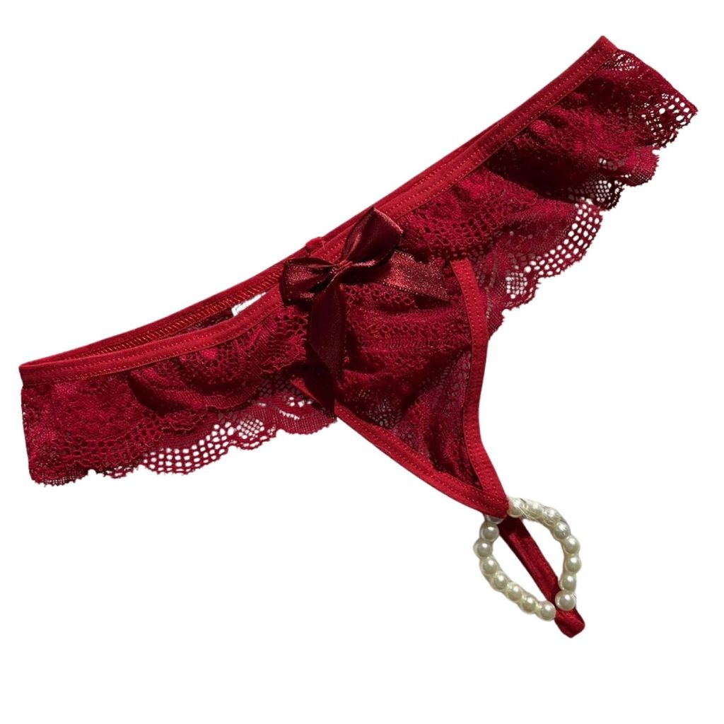Calcinha Tailandesa em Renda com Anel de Pérolas | Lingerie Sensual Fio Dental Ajustável