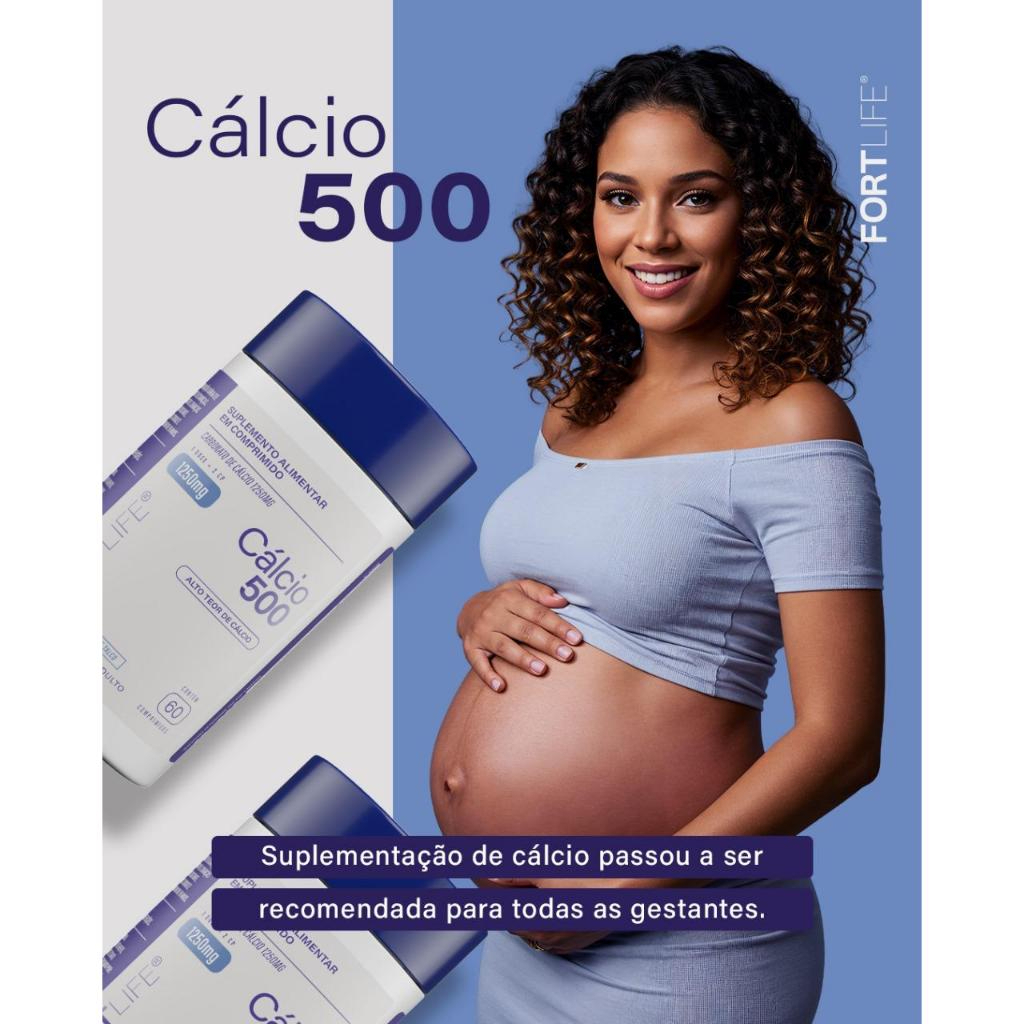 Cálcio 500 - Carbonato de Cálcio 1250mg 60 Comprimidos - Fortlife - Original