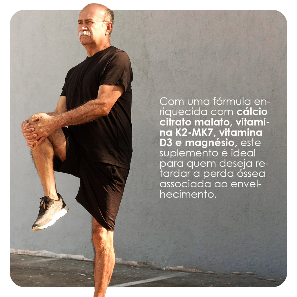 CÁLCIO CITRATO MALATO – 60 COMPRIMIDOS – LAUTON NUTRITION • Um recipiente com 60 comprimidosg; • Textura: Comprimidos; • Com cálcio citrato malato; • Vitamina K2-MK7; • Vitamina D3; • Magnésio; • Cruelty free; • Livre de glúten; • Livre de lactose; • Livre de açúcar; • Livre de soja. Para quem busca manter a saúde óssea em dia, a Lauton Nutrition oferece uma solução completa e eficiente. Com uma fórmula enriquecida com cálcio citrato malato, vitamina K2-MK7, vitamina D3 e magnésio, este suplemento é ideal para quem deseja retardar a perda óssea associada ao envelhecimento. Além de não aumentar o risco de formação de cálculos renais, ele auxilia na regulação da homeostase do cálcio e na absorção do fósforo. Com um compromisso cruelty free e livre de glúten, lactose, açúcar e soja, é a escolha perfeita para quem busca um suplemento seguro e de alta qualidade. BENEFÍCIOS • Auxilia na retardação da perda óssea associada ao envelhecimento; • Não aumenta o risco da formação de cálculos renais; • Ajuda a regular a homeosta se do cálcio e a absorção do fósforo. COMPOSIÇÃO Citrato malato de cálcio, Óxido de Magnésio, Colecalciferol (vitamina D3), Menaquinona (Vitamina K2-MK7), antiumectantes celulose microcristalina, fosfato tricálcico, estearato de magnésio e estabilizante polivinilpirrolidona. NÃO CONTÉM GLÚTEN. ALÉRGICOS: PODE CONTER AVELÃS, MACADÂMIA, NOZES, PECÃS, PISTACHE, CASTANHAS, AMENDOIM, AMÊNDOA, CASTANHA-DE-CAJU, CASTANHA-DO PARÁ, LEITE, SOJA, OVO, CRUSTÁCEOS (KRILL E CARANGUEJO) E PEIXES. *A informação de pode conter significa que os ingredientes acima são manipulados na mesma fábrica, mas não há adição direta dos mesmos no produto. SUGESTÃO DE USO O cálcio citrato malato é um suplemento em comprimido, recomendado o consumo de 2 ao dia, com água a qualquer momento do dia ou conforme indicação profissional.