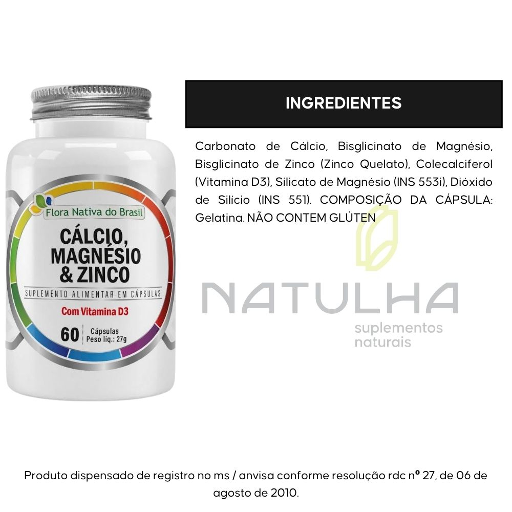 Cálcio, Magnésio, Zinco e Vit D3 60 Cápsulas - Flora Nativa