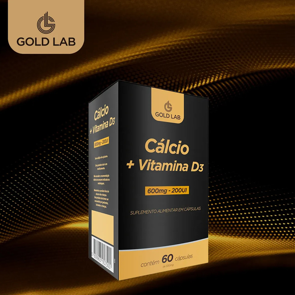 Cálcio + Vitamina D3 60 Cápsulas Gold Lab 600mg Suplemento para Ossos Dentes e Imunidade