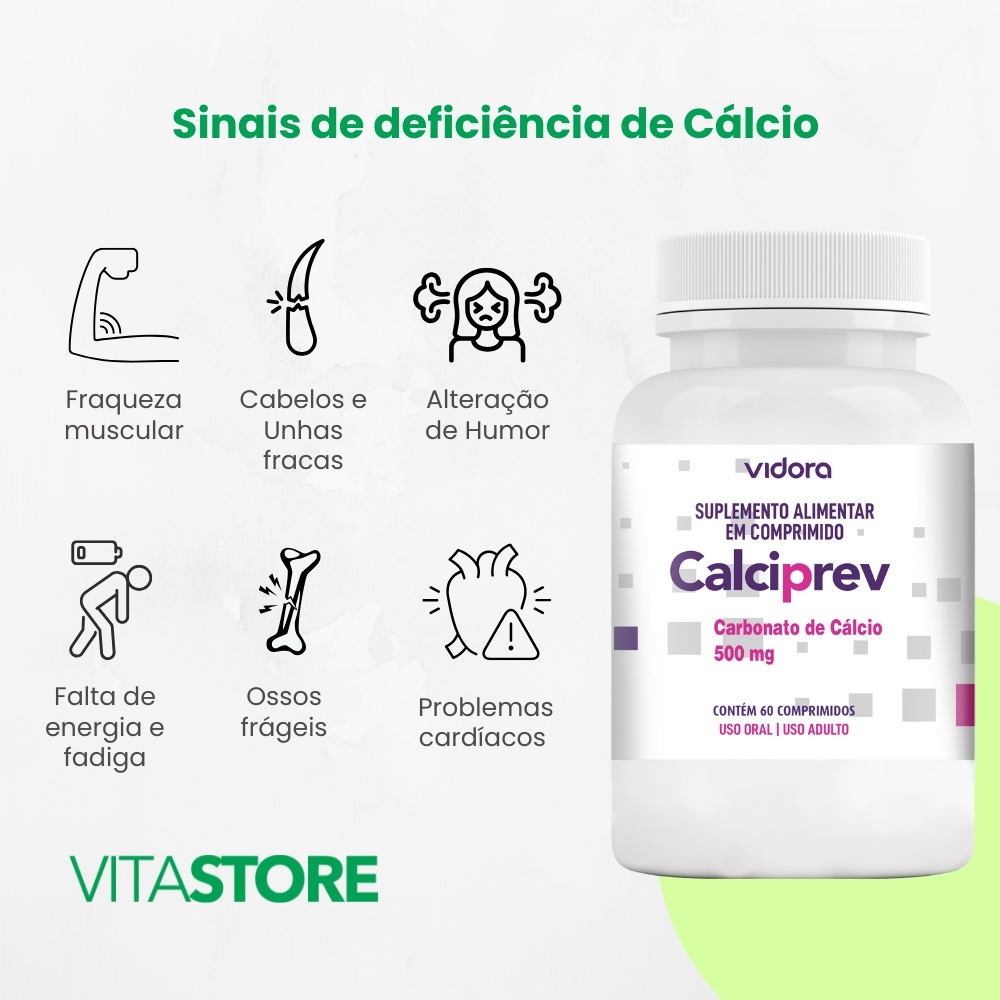 CALCIPREV – Carbonato de Cálcio 500mg Apresentação: 60 comprimidos por caixa. Modo de usar: Ingerir 2 (dois) comprimidos ao dia. Produto indicado para indivíduos acima de 19 anos. Validade: Agosto de 2027 Você sabia que a saúde começa pelos ossos? Calciprev 500mg é a chave para desbloquear o potencial máximo do seu corpo e mente. Imagine-se livre das limitações impostas pela fragilidade óssea. Com Calciprev, você fortalecerá seus ossos, reduzindo significativamente o risco de osteoporose e fraturas. Além disso, garantirá a saúde dental, com dentes fortes e resistentes a cáries, proporcionando um sorriso confiante em todas as ocasiões. Calciprev 500mg é a escolha ideal para pessoas de todas as idades que buscam uma vida vibrante e ativa. Seja você é um atleta dedicado, uma mãe ocupada ou um avô em busca de aventuras, nosso suplemento é o companheiro perfeito para impulsionar sua vitalidade e qualidade de vida. Além disso, ao apoiar a função muscular e nervosa, a suplementação regular de cálcio o ajudará a manter-se ativo e energizado, seja para correr uma maratona ou simplesmente brincar com seus netos. E os benefícios não param por aí! Estudos demonstram que a ingestão regular de cálcio desempenha um papel crucial na saúde cardiovascular, ajudando a regular a pressão arterial e a promover a função cardíaca ideal. Não permita que a deficiência de cálcio impeça você de viver sua vida ao máximo. Garanta seu suprimento de Carbonato de Cálcio 500mg hoje e dê um passo em direção a uma saúde óssea duradoura e bem-estar geral. ------------------------------------------- Benefícios ao Longo Prazo: -------------------------------------------- 1) Fortalecimento Ósseo: Calciprev fornece a dose ideal de cálcio para fortalecer seus ossos, reduzindo o risco de osteoporose e fraturas. Dê adeus às preocupações com ossos frágeis e dê as boas-vindas a uma estrutura óssea resistente. 2) Saúde Dental Superior: Com o Calciprev 500mg, seus dentes também recebem um impulso de saúde, com esmalte fortalecido e proteção contra cáries. Sorria com confiança, sabendo que seus dentes estão protegidos. 3) Energia e Vitalidade: Aumente sua energia e vitalidade com Calciprev. Nossa fórmula promove a função muscular e nervosa adequada, garantindo que você esteja pronto para enfrentar qualquer desafio que a vida lhe apresentar. 4) Coração Saudável: Cuide do seu coração com o Calciprev 500mg. Estudos mostram que a ingestão adequada de cálcio pode ajudar a manter a pressão arterial sob controle e promover a saúde cardiovascular geral. 5) Melhor Qualidade de Vida: Ao investir na sua saúde óssea em geral com a suplementação regular de Calciprev, você está investindo em uma vida mais ativa, vibrante e cheia de possibilidades. Liberte-se das limitações impostas pela deficiência de cálcio e abrace uma vida plena e gratificante. Garanta seu Calciprev 500mg e dê um passo em direção a uma saúde óssea duradoura e bem-estar geral. SEM GLÚTEN. SEM AÇUCAR. SEM CALORIAS. SEM CARBOIDRATOS. ------------------- Precauções ------------------- - Via oral - Uso interno - Uso adulto para indivíduos acima de 19 anos. - RECOMENDAÇÕES DE USO: Ingerir 2 (dois) comprimidos ao dia. - O uso do produto é contraindicado em pacientes com antecedentes de hipersensibilidade a qualquer dos componentes da fórmula. --------------------- Composição --------------------- Cada dose (2 comprimidos) contém: - Cálcio ... 400mg. SEM GLÚTEN. SEM AÇÚCAR. SEM CALORIAS. SEM CARBOIDRATOS. ------------------------- INGREDIENTES ------------------------- Cálcio (carbonato de cálcio). Agente de massa INS 460i celulose microcristalina, agente estabilizante INS 468 croscarmelose sódica, agentes antiumectantes INS 551 e INS 460iii dióxido de silício coloidal e estearato de magnésio. M.S.: Produto dispensado da obrigatoriedade de registro, conforme RDC 240/18.