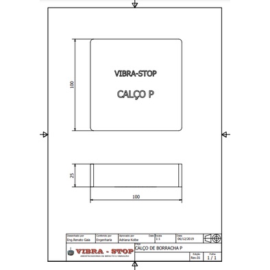 DISTRIBUIDO POR C-JAÚ FERRAMENTAS CALCO DE BORRACHA TAMANHO P KIT COM 4 Modelo: P Capacidade 700 kg Dureza 60 Shore A Medidas 100 mm x 100 mm Altura 25 mm Contém: 4 Peças Aplicações Suporte para equipamentos sem furação, calço ou apoio para tubulações, calço para os vibra-stop da linha tradicional e suporte para equipamentos sem fixação