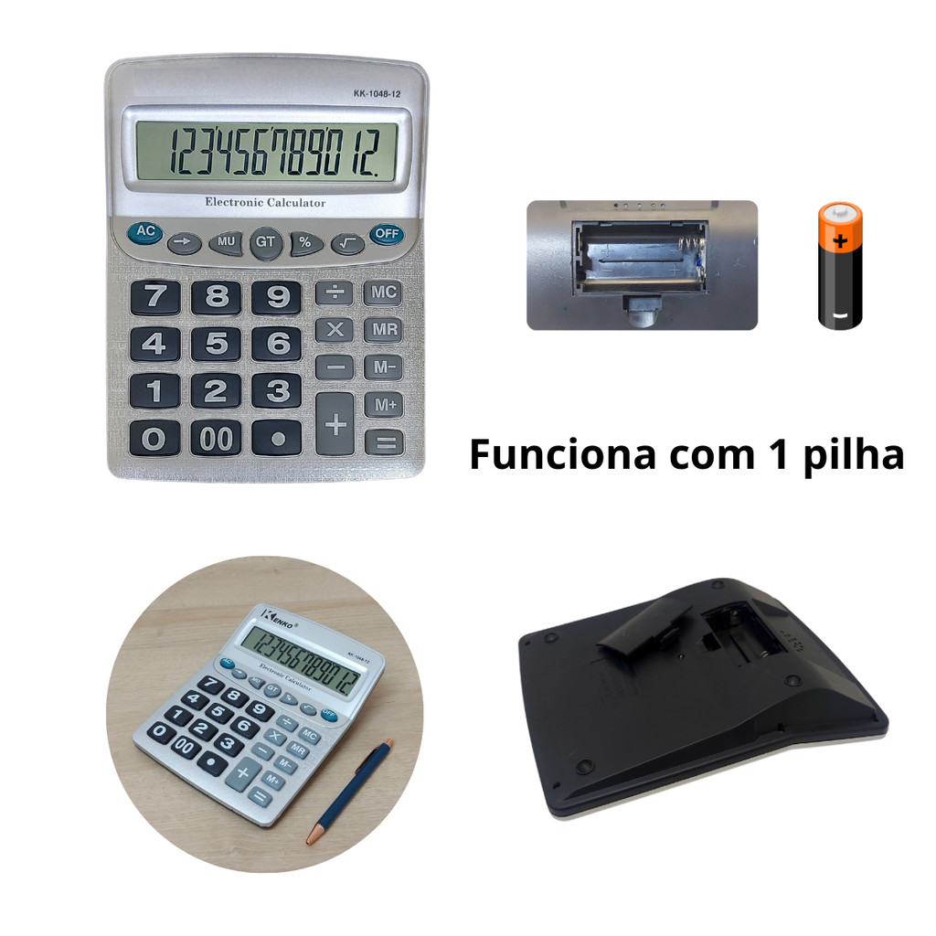 Perfeita para frentes de caixa, agiliza o atendimento em mercados, lojas e padarias com uso rápido e preciso. Benefícios principais: • Proteção e Segurança: Produtos testados antes do envio para garantir funcionalidade. Pronto envio e despacho rápido. • Compra Confiável: Nota fiscal emitida em todas as compras, garantindo transparência. • Grande e Funcional: Medindo 21 x 16 x 4,4 cm, ideal para balcões e mesas, com ótimo desempenho. • Alimentação: 1 pilha AA comum (não incluso). • Ideal para Comércio: Teclas grandes e display LCD claro. • Durável e Econômica: Plástico resistente, tecla OFF para economizar energia e prolongar a vida útil da pilha. Dados Técnicos: • Tamanho: 21 x 16 x 4,4 cm • Fonte de Alimentação: Pilha (não incluso). • Material: Plástico de Alta Qualidade • Teclas Grandes e Display LCD Claro • Tecla OFF para Desligamento A Calculadora foi projetada para atender às necessidades de quem trabalha com cálculos diários de forma rápida e eficiente. Com um design robusto e funcional, ela é ideal para quem precisa de um equipamento prático e confiável. Seu tamanho grande e teclado espaçado facilitam a visualização e a digitação, tornando-a uma excelente escolha para ambientes comerciais de alto movimento. Adquira agora sua Calculadora, a escolha perfeita para caixas de mercado, padarias, lojas de conveniência e comerciantes em geral. Atenção: Compartimento para duas pilhas, mas só uma é necessária. A ausência de uma mola não é defeito, o produto funciona normalmente com uma pilha.