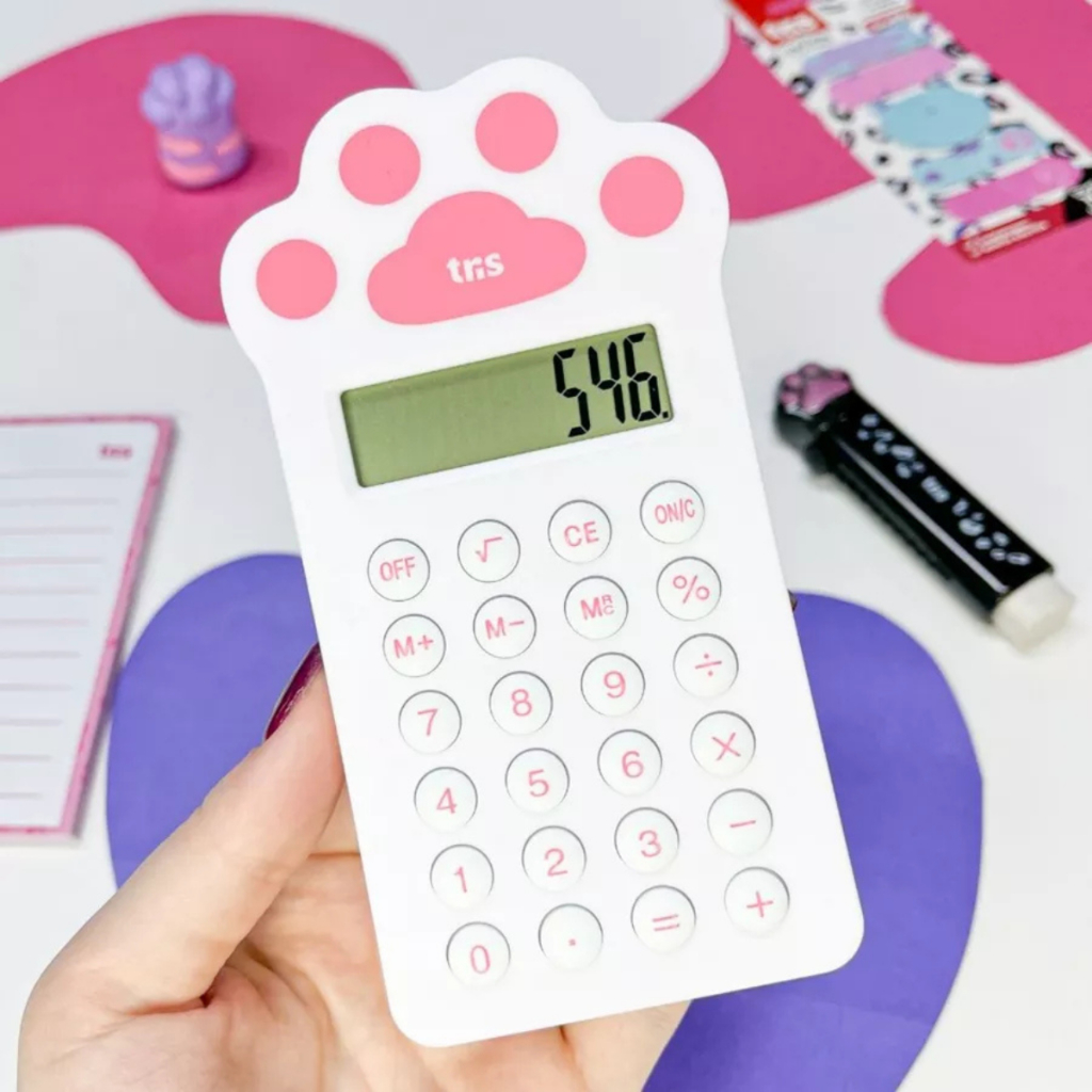Calculadora Patinha Gatinho Branca Tris Holic Pet 8 Dígitos Papelaria Fofa Volta as Aulas