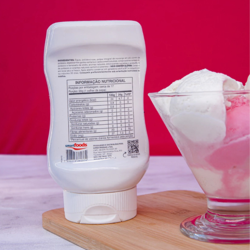 Cobertura Sabor Morango (335g) Mrs Taste Nossa calda de morango é deliciosa, podendo ser utilizada como cobertura de sorvetes, panquecas, waffles, smoothies, e o que mais sua imaginação criar! Feita com a própria polpa de morango, ela é Baixo em Calorias, Muito baixo em Sódio e Sem adição de açúcares, e para deixar tudo ainda melhor, ela é FONTE DE FIBRAS! Ou seja, além de saborear essa calda irresistível, ainda estará contribuindo para o bom funcionamento intestinal, e também proporcionando a sensação de saciedade auxiliando no controle do peso, além de ajudar a controlar a glicemia e o colesterol. Já viu um doce ter todos esses benefícios? INGREDIENTES: Água, polidextrose, polpa integral de morango em pó, cloreto de potássio, espessantes goma xantana e carboximetilcelulose, conservadores sorbato de potássio e benzoato de sódio, aromas naturais, edulcorantes sucralose e acessulfame de potássio e corantes naturais carmim e caramelo. Mudança na rotulagem nutricional: Informamos que passamos recentemente por uma mudança na rotulagem nutricional nos produtos da Mrs. Taste devido às novas legislações RDC Nº 429/20 e IN Nº75/20 da ANVISA. Portanto, os lotes mais recentes estão com diferentes caracterizações.
