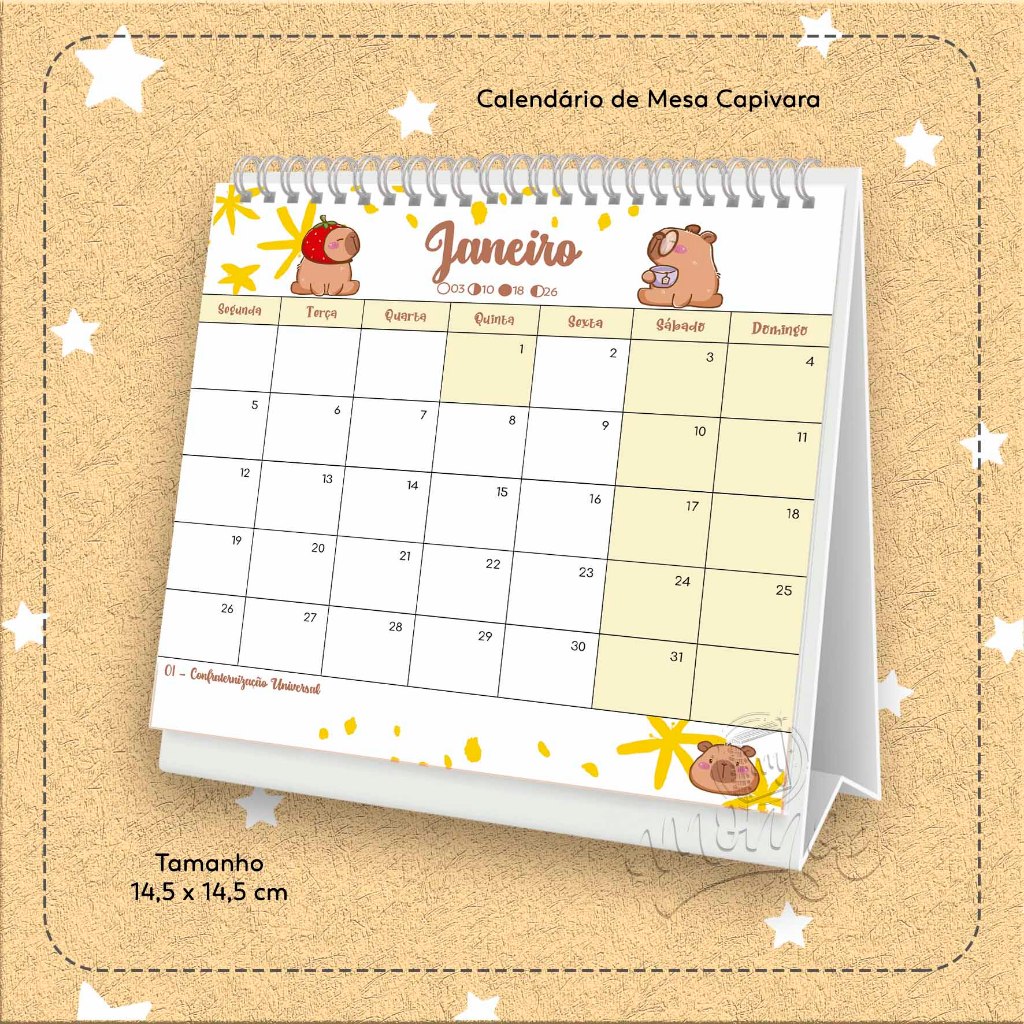 Calendário de Mesa 2026 Capivara