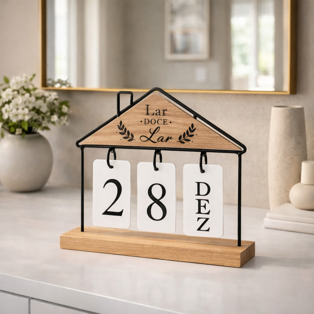 Calendário de Mesa Decorativo com Plaquinhas Preto Dourado Permanente Escritório Reunião