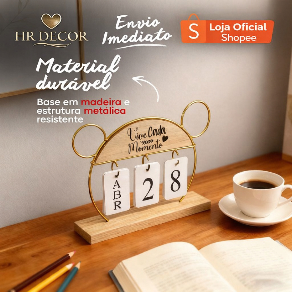 BENEFÍCIOS: ✔️ Decoração moderna que transforma qualquer ambiente ✔️ Ideal para casa, escritório, home office e cantinhos especiais ✔️ Prático e funcional — visualize datas rapidamente ✔️ Calendário permanente: dura o ano inteiro ✔️ Plaquinhas frente e verso com números, dias e meses ✔️ Acabamento sofisticado e materiais de alta qualidade 🏷️ Marca: Malaysia Collection 🛠️ Material: Estrutura metálica + base em madeira + plaquinhas rígidas de alta durabilidade 📏 MEDIDAS — Modelo com Plaquinhas: • Altura: 16,7 cm • Largura da base: 5 cm • Comprimento: 27 cm 📏 MEDIDAS — Modelo de Madeira Preto: • 23,8 cm x 13,5 cm x 21,5 cm 📦 Conteúdo do Produto: • 01 Calendário Decorativo • 06 plaquinhas de números • 04 plaquinhas de dias da semana • 06 plaquinhas de meses • Plaquinhas frente e verso Compra Segura Com Garantia Shopee ✅ Somos Vendedores Indicados Pela Shopee. ✅ Enviamos dentro de 3 horas úteis. ✅ ℹ️ IMPORTANTE: • Produto enviado em embalagem segura • Ideal para uso decorativo e organizacional • Pode haver pequena variação de cor devido à iluminação